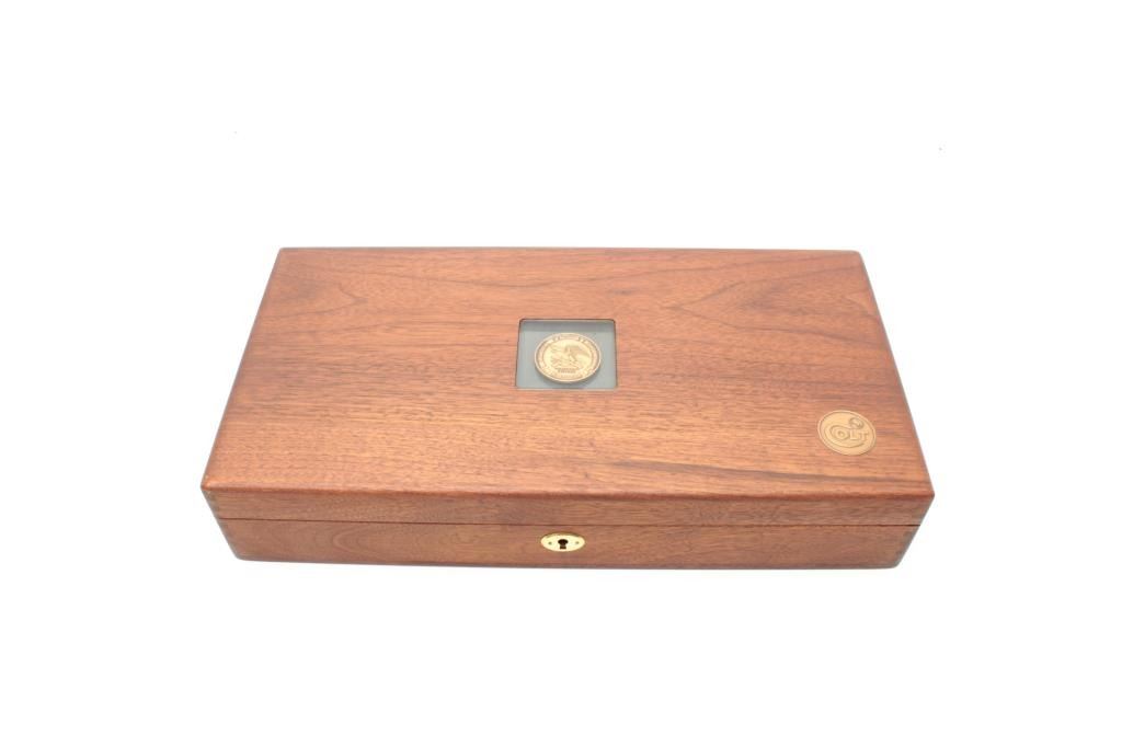NRA Commemorative that has been modified to hold a pair of semi-automatic pistols; appears to be possibly for a Pocket Model 1903 .38 caliber and a Pocket 1903 .32 caliber. Est.: $100-$200.