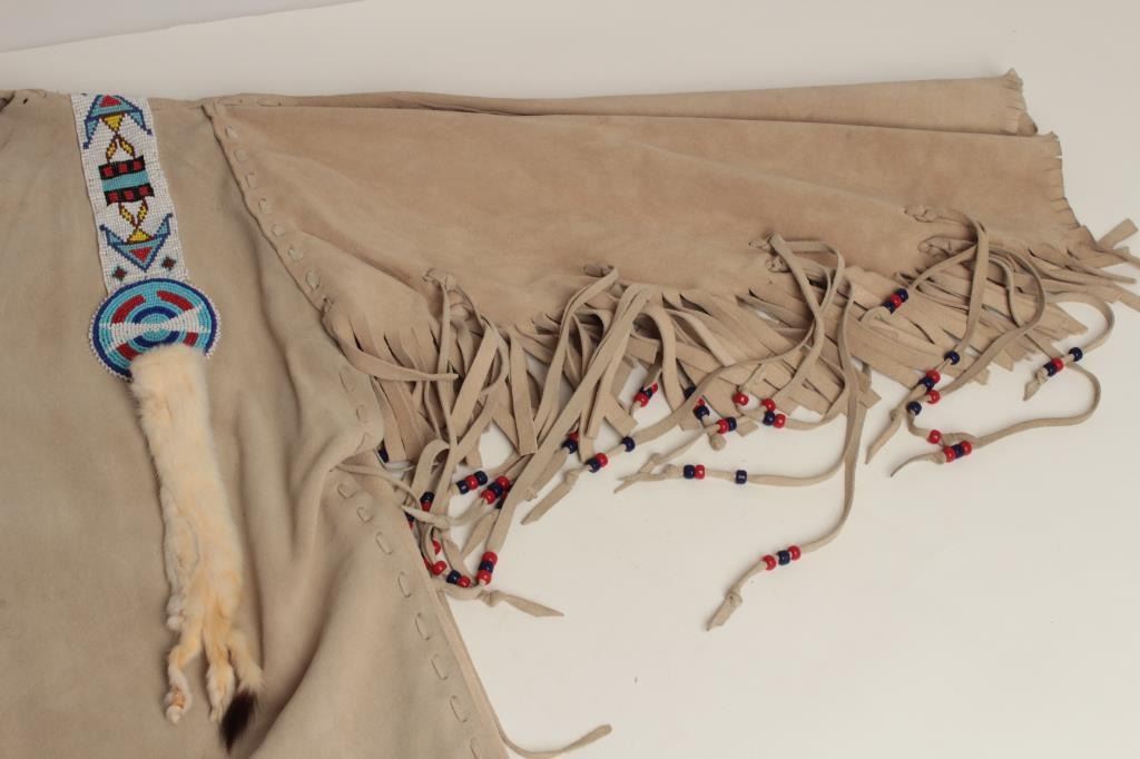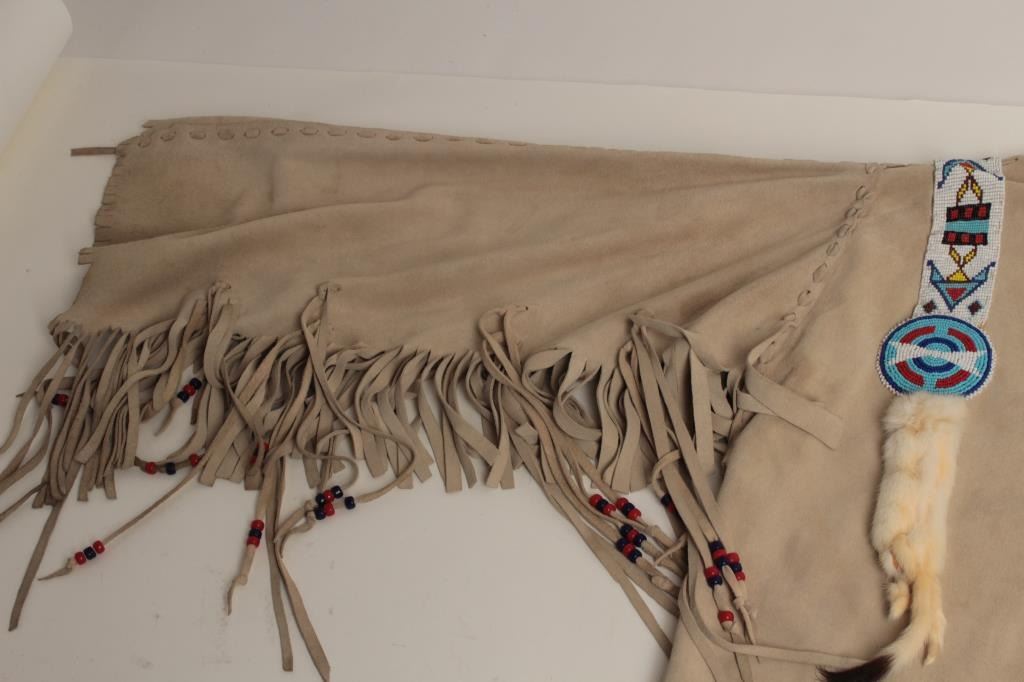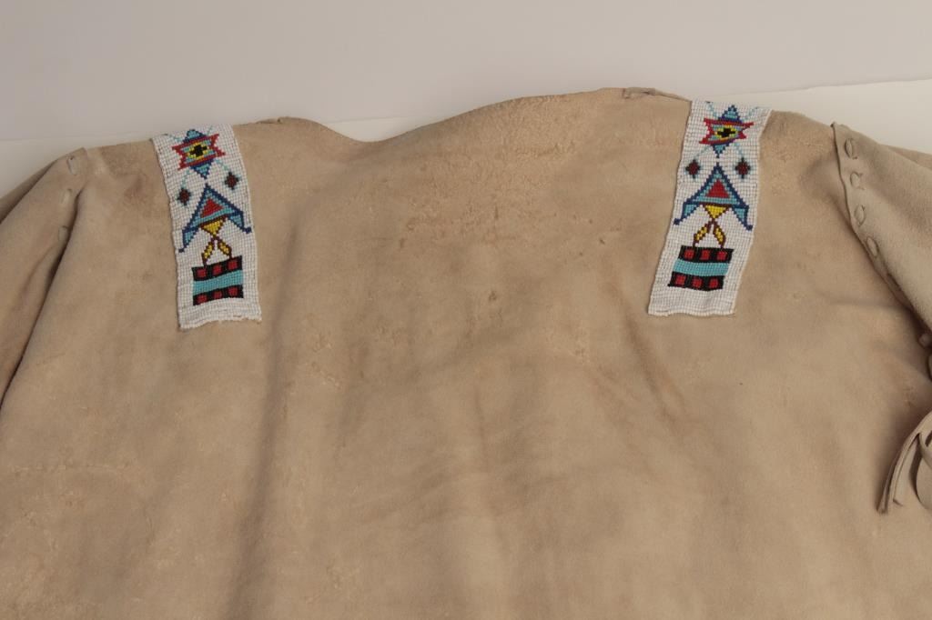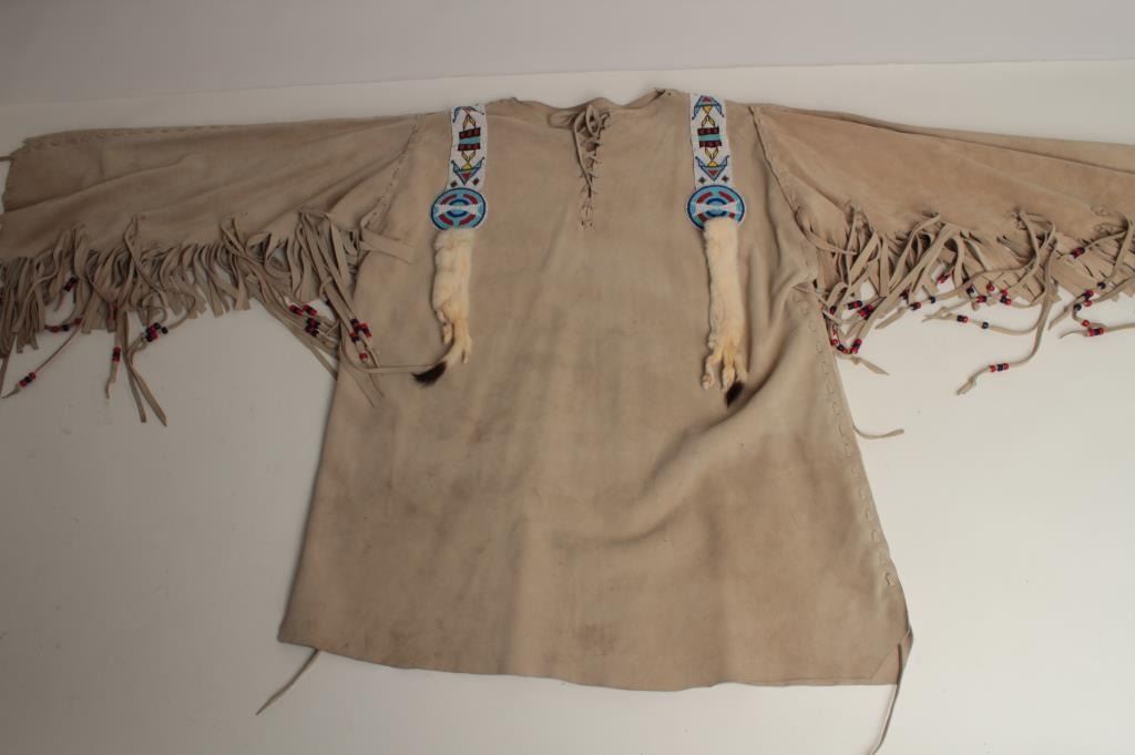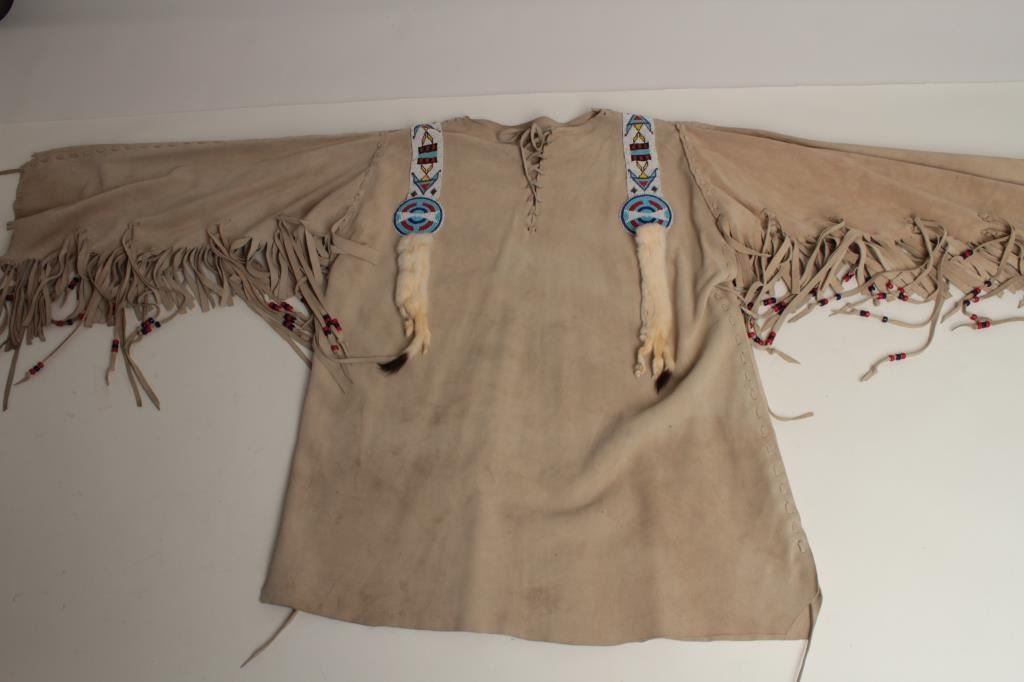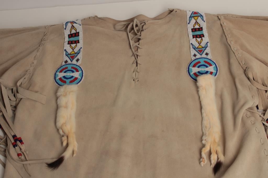 Lot 704 Buckskin and beaded war shirt for Rendezvous and