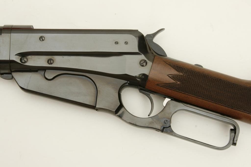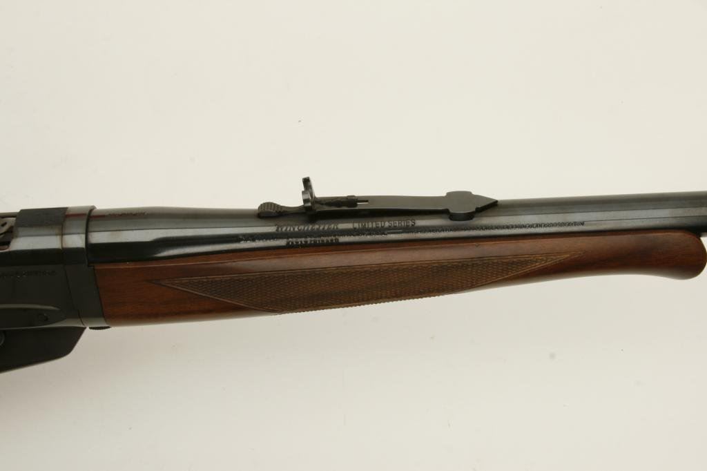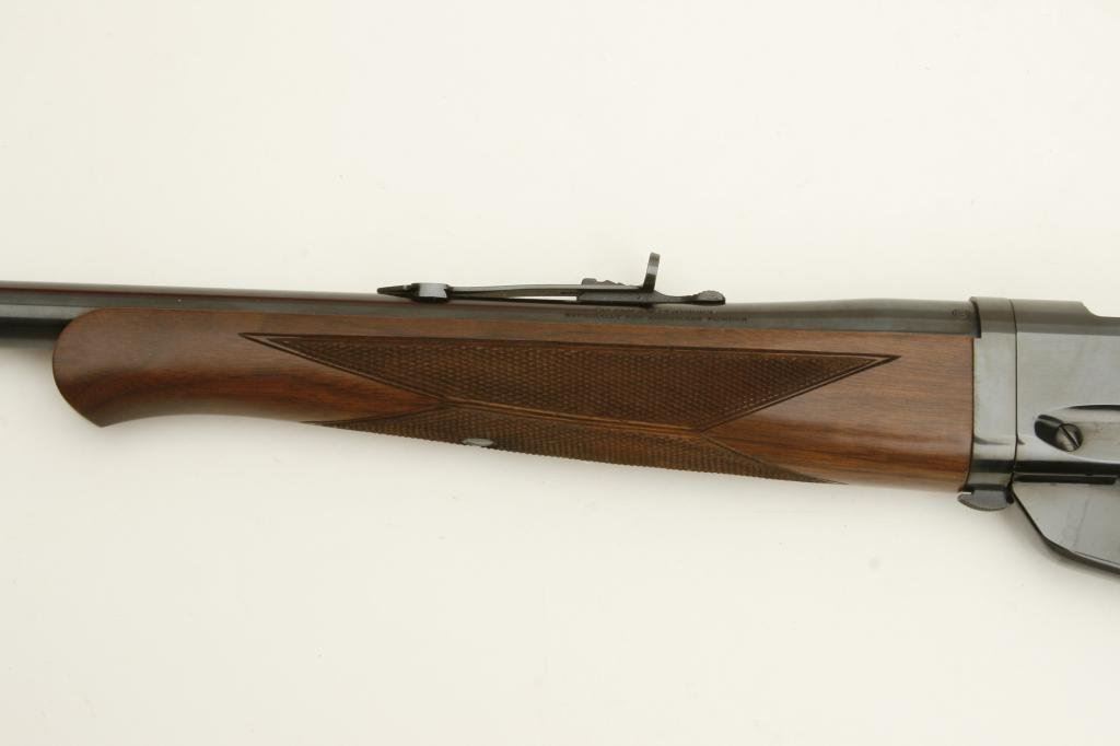 rifle, desirable .405 caliber, 24” round barrel, blued finish, checkered wood stocks, S/N 00742MV95A, in near new condition and with instructions paperwork and red two-piece cardboard box with end label numbered to this gun. (Modern). Est.: $700-$1,400.