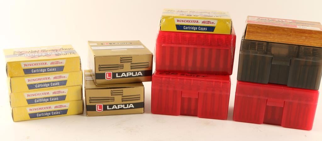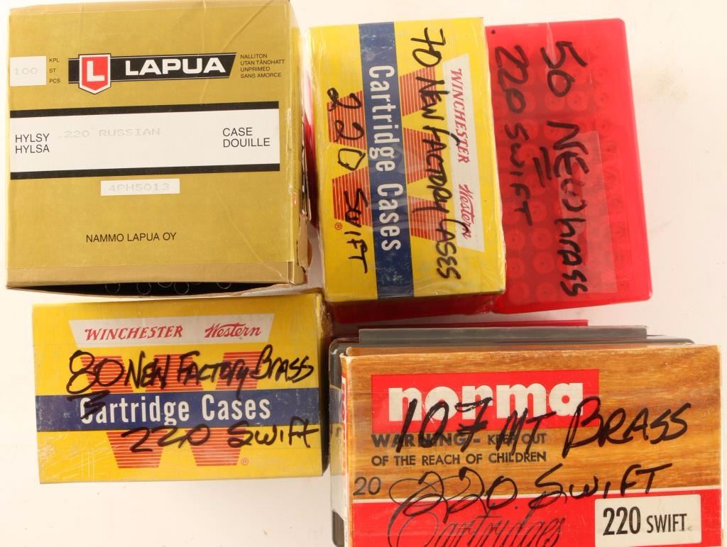 Including 477 rds of .220 Swift misc. brass, and 200 rds of .220 Russian brass by Lapua
