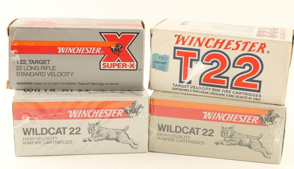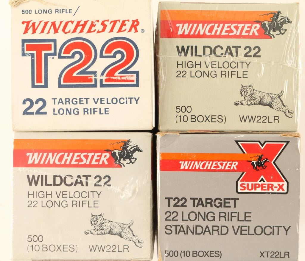 Includes 4 boxes of 500 assorted .22 high velocity, target velocity and standard velocity cartridges