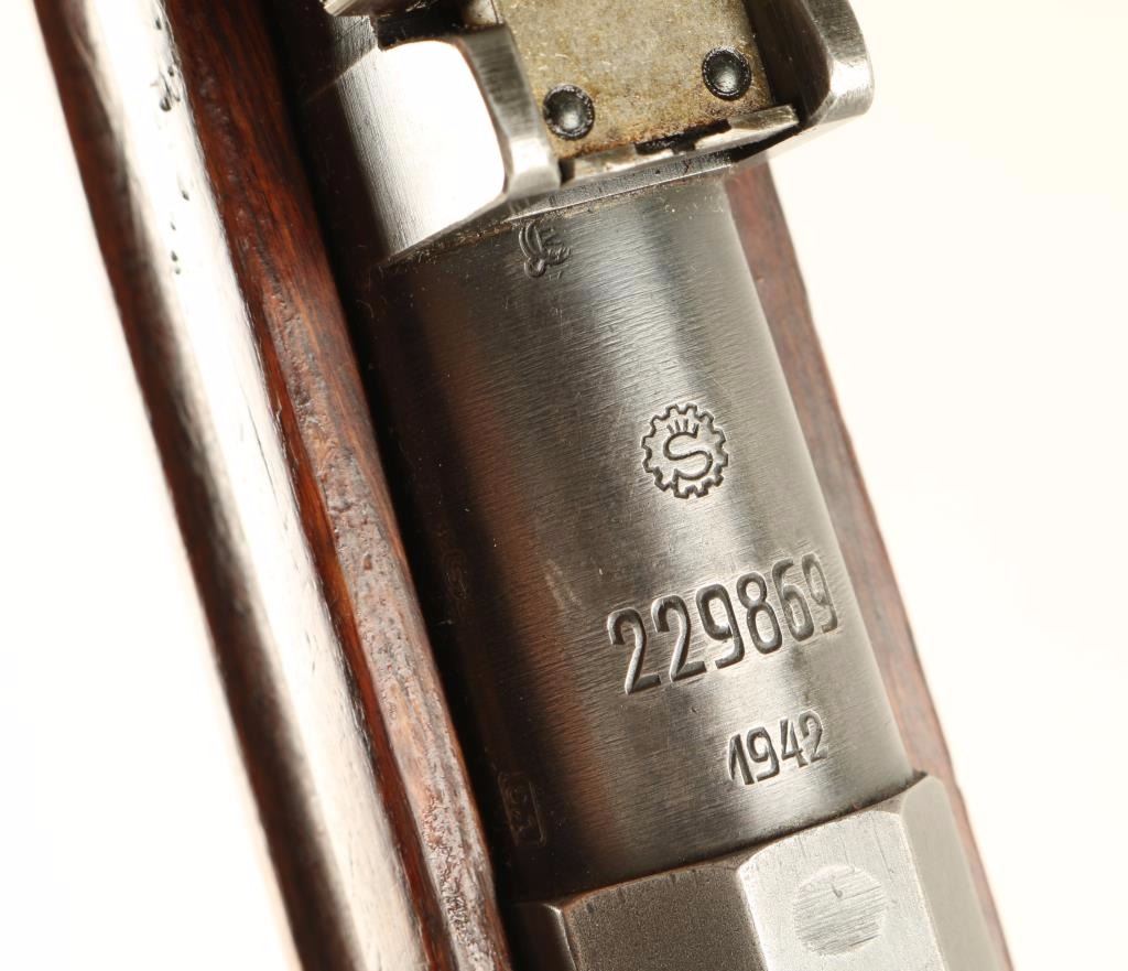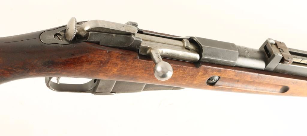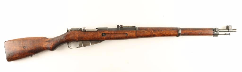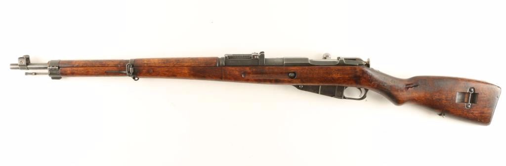 Finnish Military bolt action service rifle chambered in 7.62x54R, circa 1942. Features a blued finish, Sako marked 27" barrel, winged front sight, graduated rear sight to 1,000 meters, hinged front barrel band with bayonet lug, cleaning rod, sling swivels, octagonal receiver, straight bolt handle, internal box magazine, smooth wood handguard and finger-jointed semi pistol grip shoulder stock with metal buttplate. Serial numbers match on barrel, receiver and bolt. Import marks on barrel. Rifle retains approximately 60% of it's dulling blue finish. Action is smooth, bore is excellent, and wood stocks are good showing cracks and repairs. Condition is good+. ***C&R Firearm*** ***Modern Firearm***