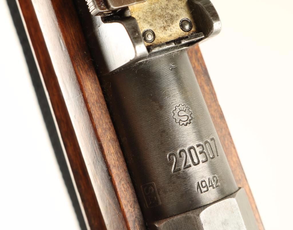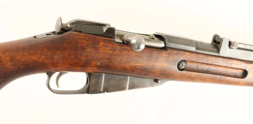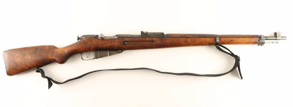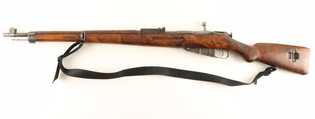 Finnish Military bolt action service rifle chambered in 7.62x54R, circa 1942. Features a blued finish, Sako marked 27" barrel, winged front sight, graduated rear sight to 1,000 meters, hinged front barrel band with bayonet lug, cleaning rod, black nylon sling, octagonal receiver, straight bolt handle, internal box magazine, smooth wood handguard and finger-jointed semi pistol grip shoulder stock with Sako 43 stamp & metal buttplate. Serial numbers match on barrel, floorplate and bolt handle. Import marks on barrel. Rifle retains approximately 40% of it's dulling blue finish. Action is smooth, bore is semi-bright with good rifling, and wood stocks are very good showing an old repair at the wrist. Condition is good+. ***C&R Firearm*** ***Modern Firearm***