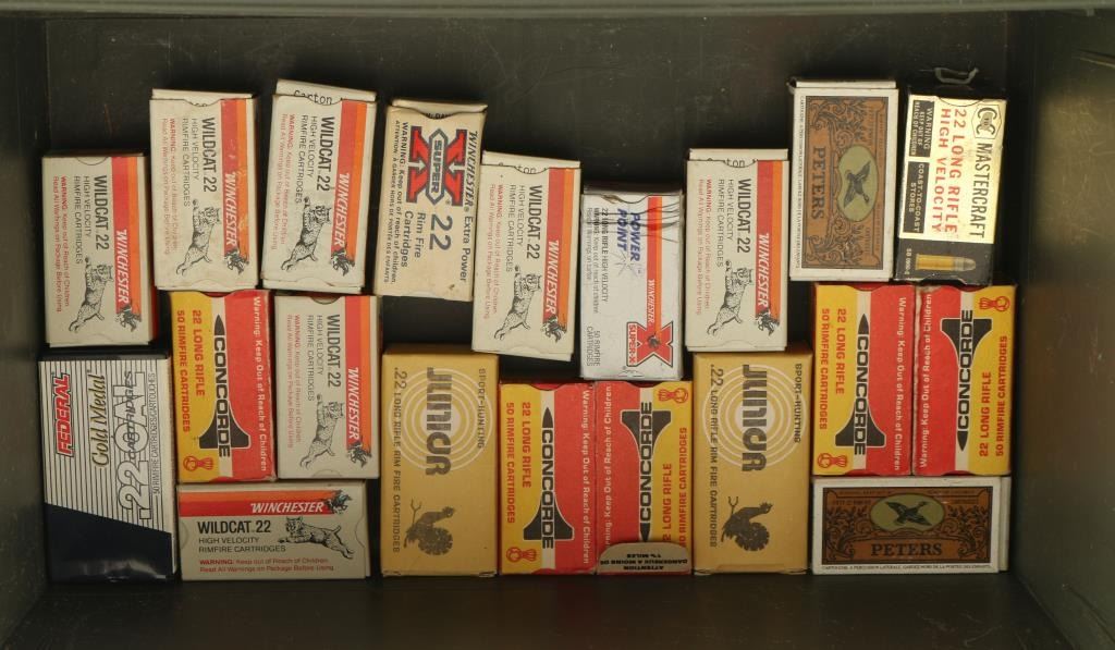 Including approx. 1000 rds of .22 LR by various makers and a heavy duty plastic ammo box.
