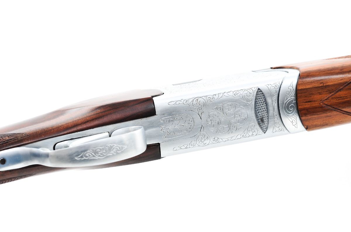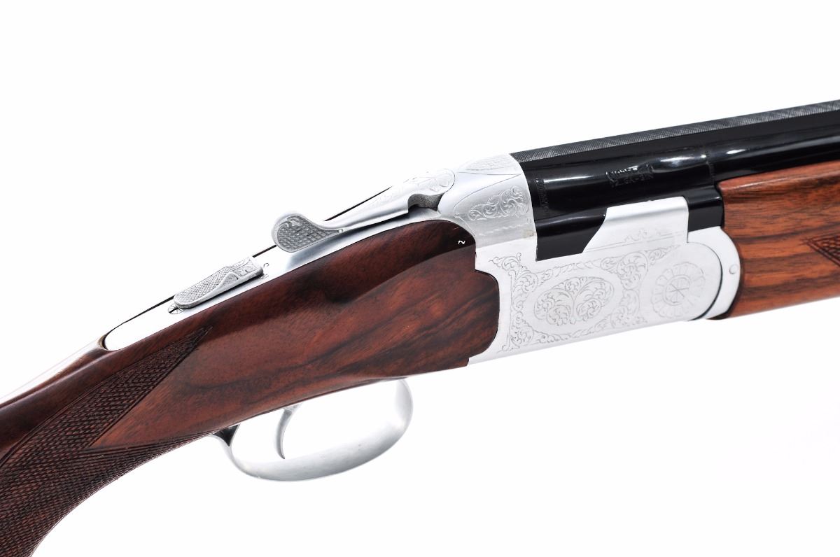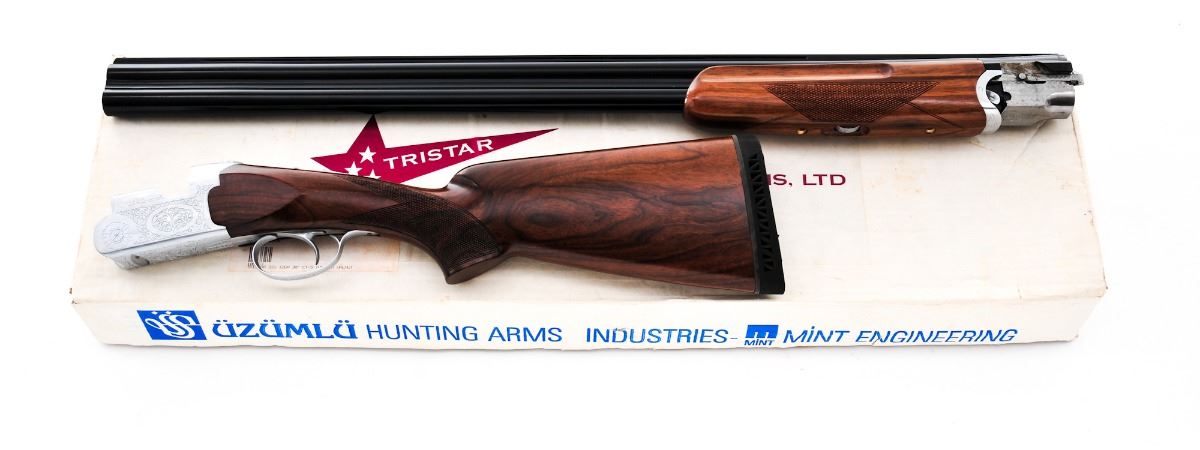 Tristar Sporting Arms, Ltd. Model 333 Over/Under Field Grade Shotgun, #106963, 12 ga., 3'' chs., blue finish 30'' barrel with matted 5/16'' ventilated rib, front and middle brass beads, interchangeable Mod. /I.C. chokes installed, and ejectors; coin-finished frame has medium scroll engraving and a mechanical trigger with top-tang combination automatic safety and barrel selector; checkered pistol-grip Turkish walnut stock and fingergroove forend have a semi-gloss finish and a 13-3/4'' length of pull over a 3/4'' black recoil pad; weight is 7-7/8 lbs. Condition appears as new in the original box, with a small folding manual. Original Full, Imp. Mod. and Skt. chokes are not included. Est.: $400-$600. (Modern)