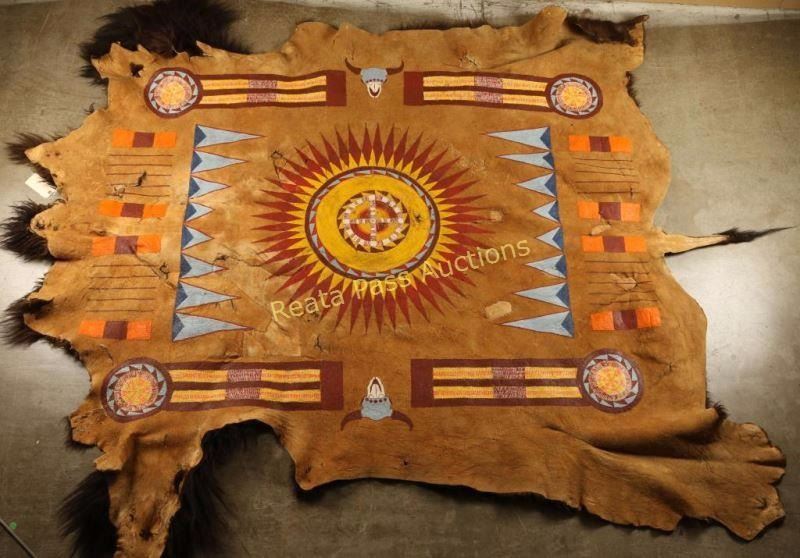 Lot 168 Mandan-Hidatsa Pinwheel Painted Buffalo Hide