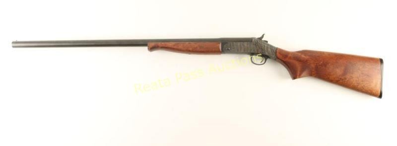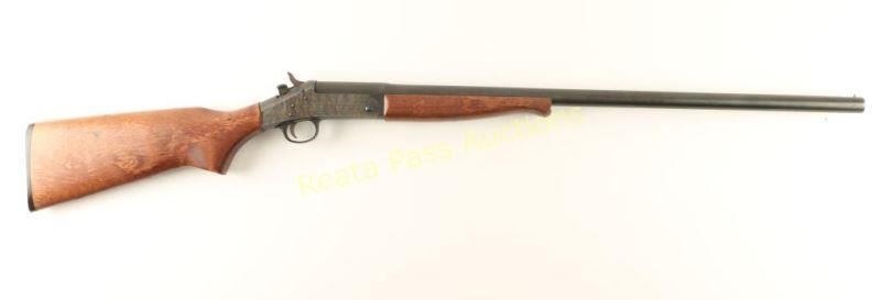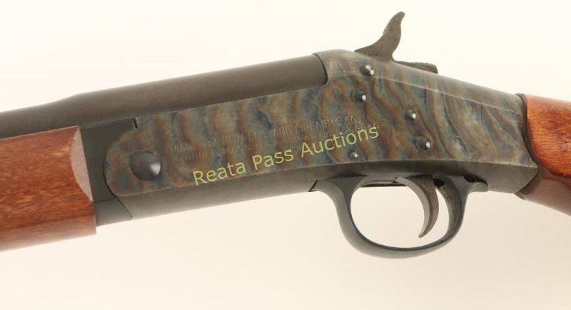 SN: NH442525 Single shot shotgun chambered for 3" 12 gauge shells, comprised of an H&R shotgun barrel and N.E.F. tranquilizer-gun receiver. Features a blued 27 3/4" modified choke barrel, brass bead front sight, case hardened receiver, beveled trigger, serrated hammer spur, schnabel wood forend and pistol grip shoulder stock with black factory buttplate. The barrel exhibits a dark brown/grey patina and the receiver shows nice case colors with a small amount of scattered surface rust. Action is crisp, bore is excellent and wood stocks are very good with a few small losses. Condition is good. ***Modern Firearm***