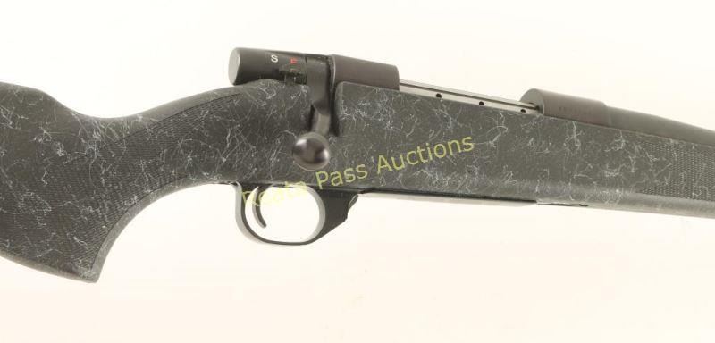 Japanese made bolt action sporting rifle chambered in .257 Weatherby Magnum. Features a blued finish, 24" tapered barrel, no provisions for sights, drilled & tapped receiver with brass plug screws, integral box magazine with hinged 'NRA' floorplate, manual safety, serrated trigger, swivel studs, rubber recoil pad and Monte Carlo style textured black synthetic stock with marbled design. Includes the original factory box with lock. Rifle retains approximately 98% of it's original blued finish showing minimal wear, receiver turning slightly plum and a single speck of surface rust observed on the barrel. Action is smooth, bore is excellent and synthetic stock is fine. Condition is excellent in box. ***Modern Firearm***
