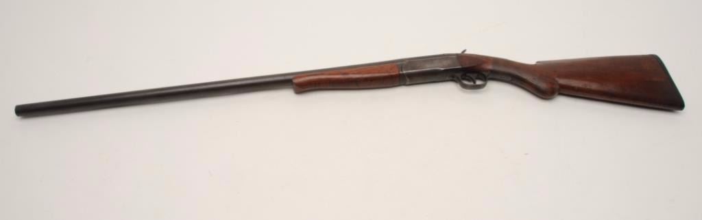 Lot 4 Stevens single barrel shotgun, 12 gauge, 30” barrel, wood stocks, S/N E 189, in overall good condi