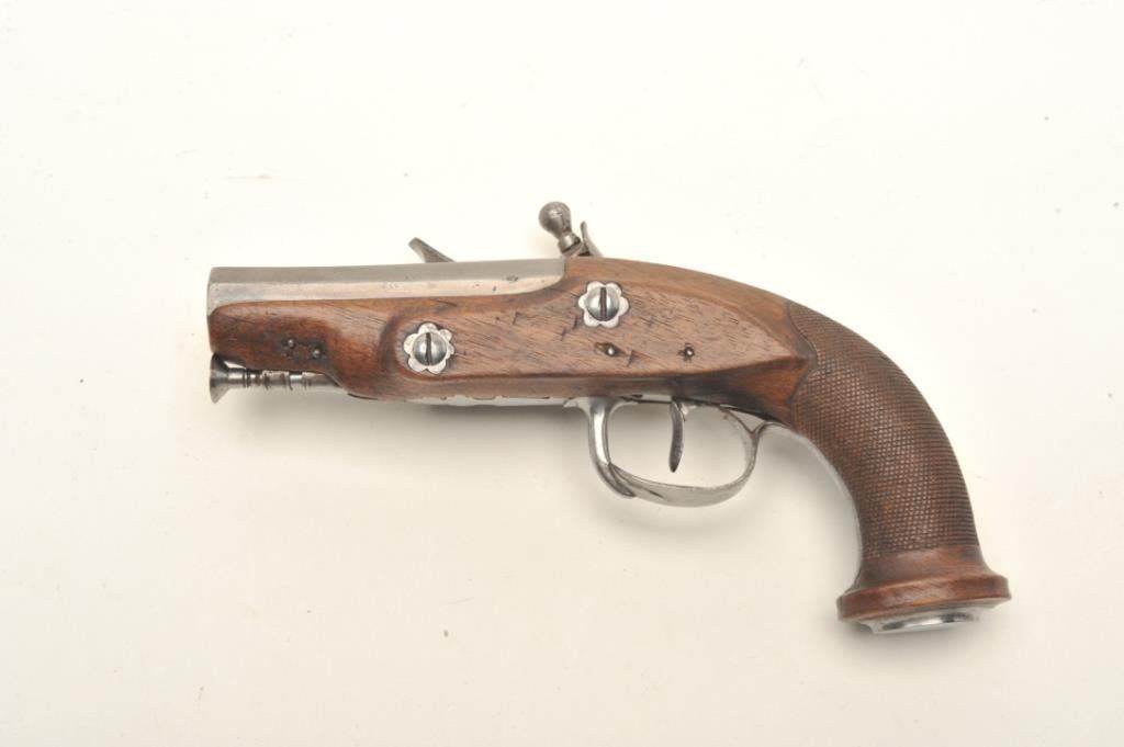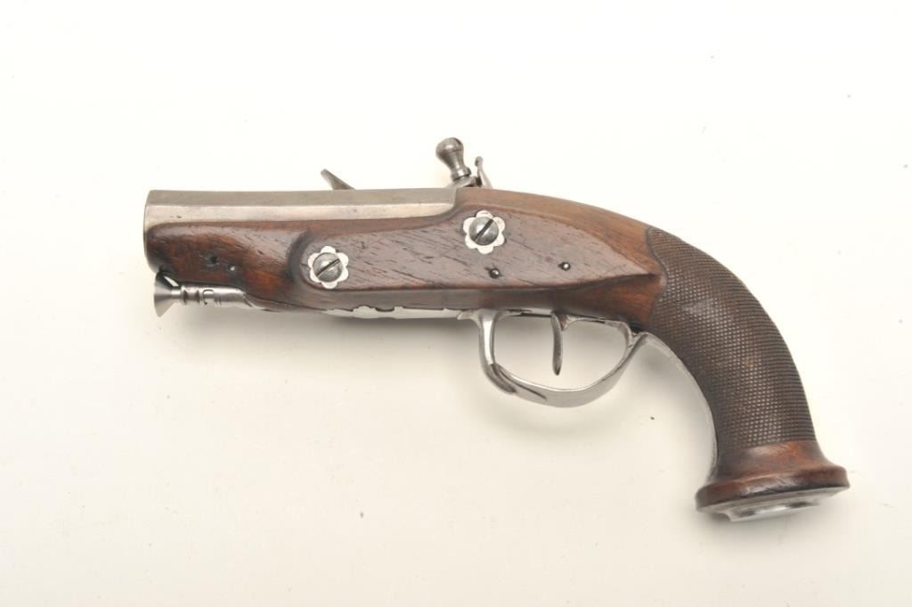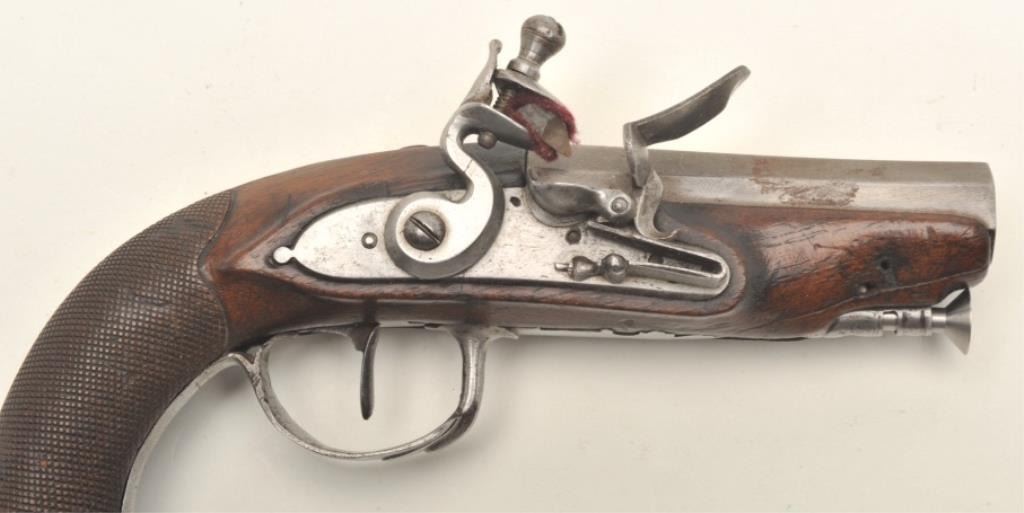 Lot 68 Pair of French flintlock pocket pistols, Napoleonic era; “LC” (Le Clerc) barrel makers marks, .50