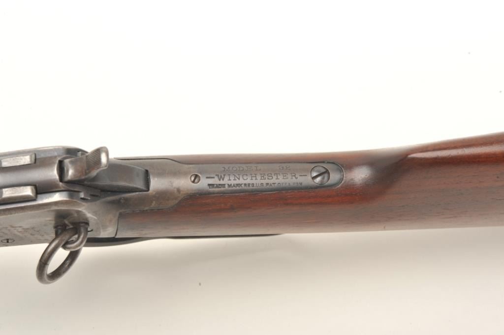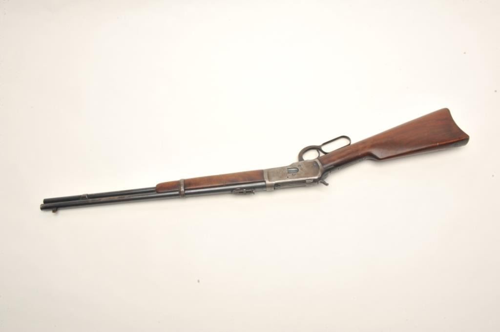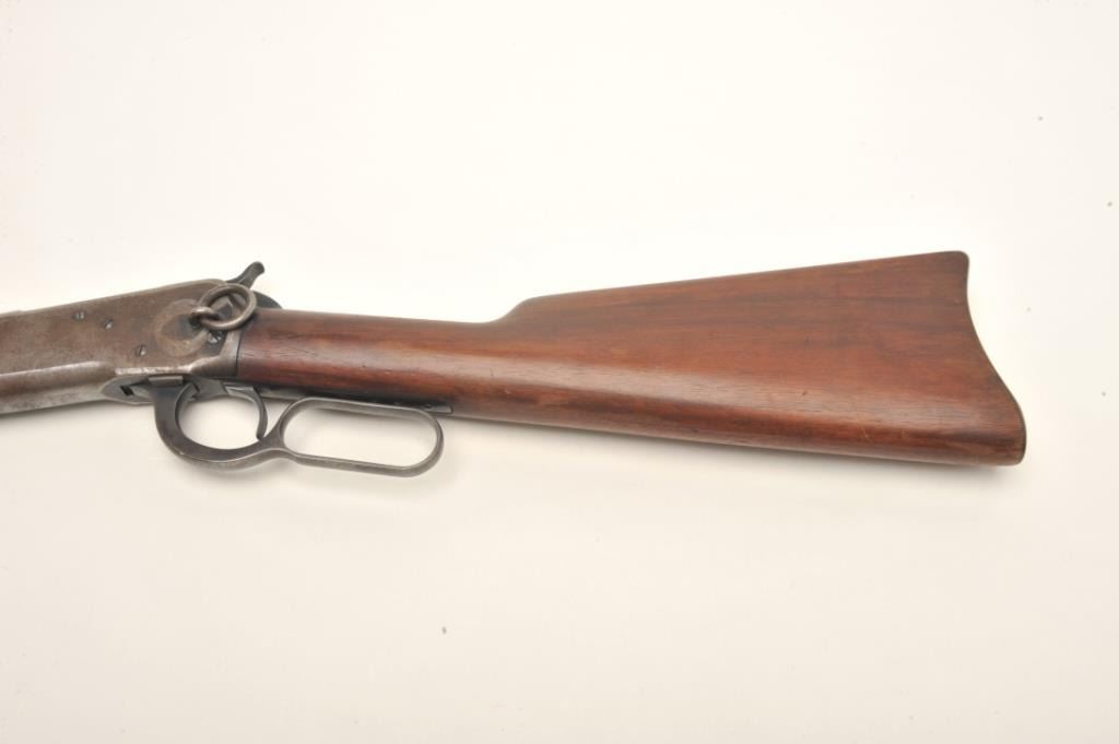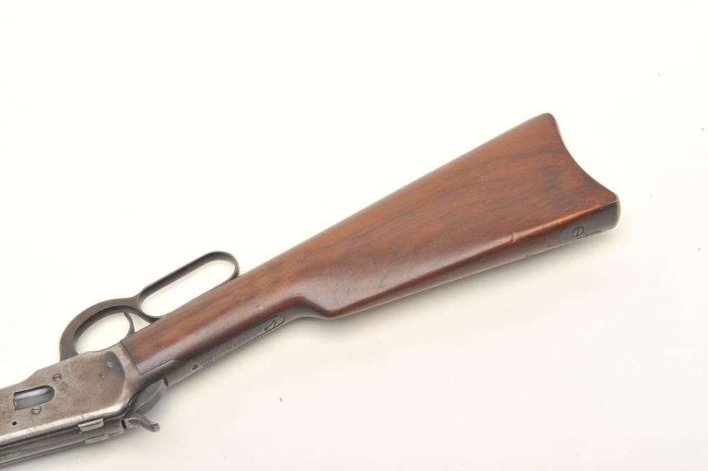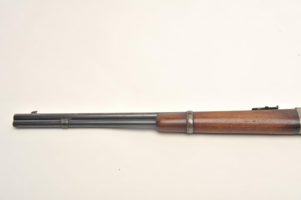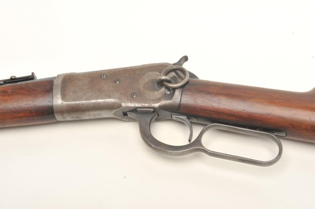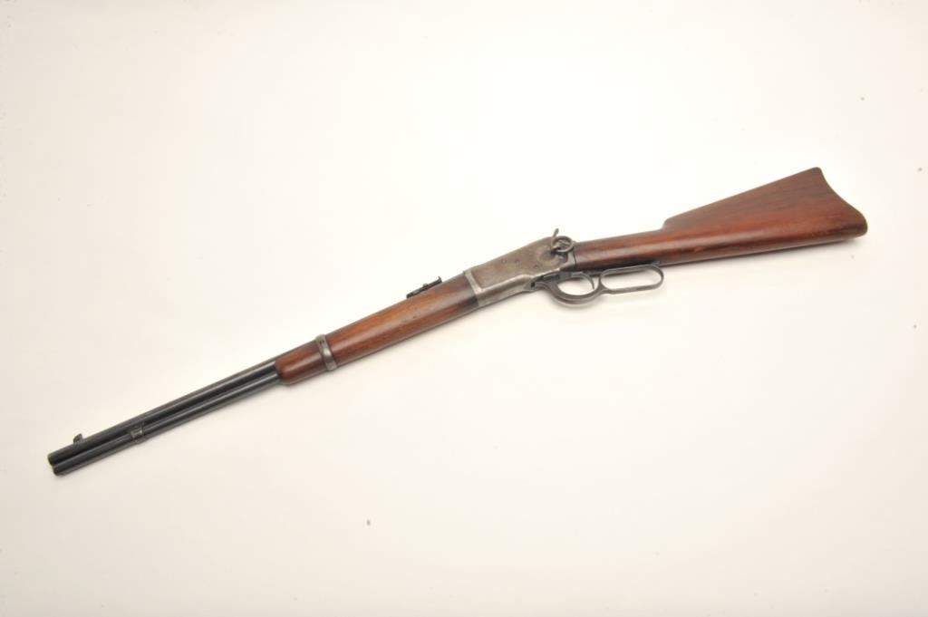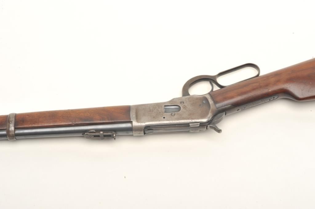 Winchester Model 92 lever action SRC, .25-20 caliber, 20” round barrel, S/N 918466, in original very good condition with exceptional wood stock, 50% blue and a good bore. (C&R). Est.: $900-$1,800.