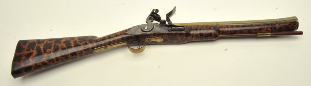 Lot 125b Early 18th century blunderbuss signed “T. Green, Londini. The gun shows 3 screw side plate, flat l