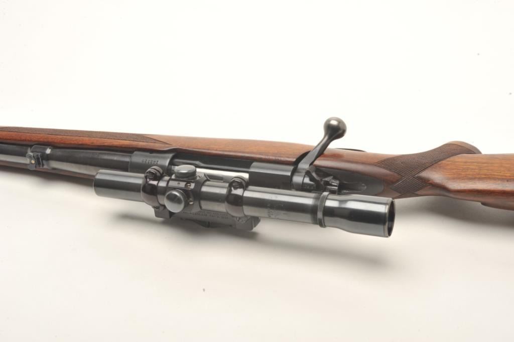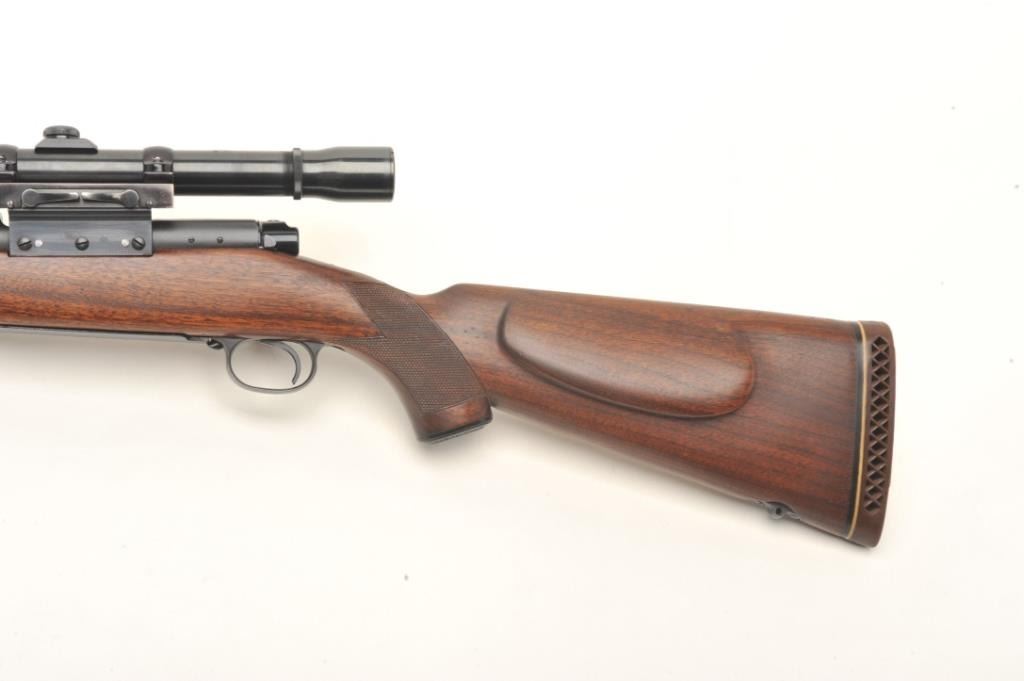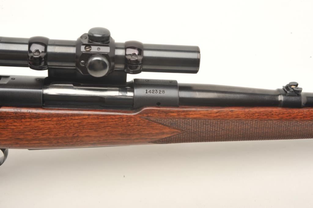 Pre-64 Winchester Model 70 Super Grade bolt action rifle, .270 W.C.F. caliber, 24” round barrel, blued finish, checkered wood stock with hard rubber butt pad, S/N 142328, mounted with a Weaver K2.5 scope in aGriffin & Howe base displaying fine optics; in overall fine condition with a fine bore, crisp action, sharp markings and fine stock. (C&R). Est.: $1,500-$2,500.