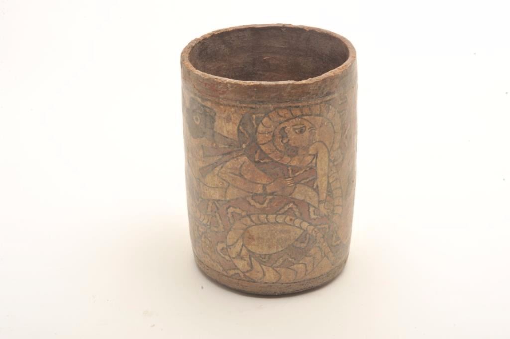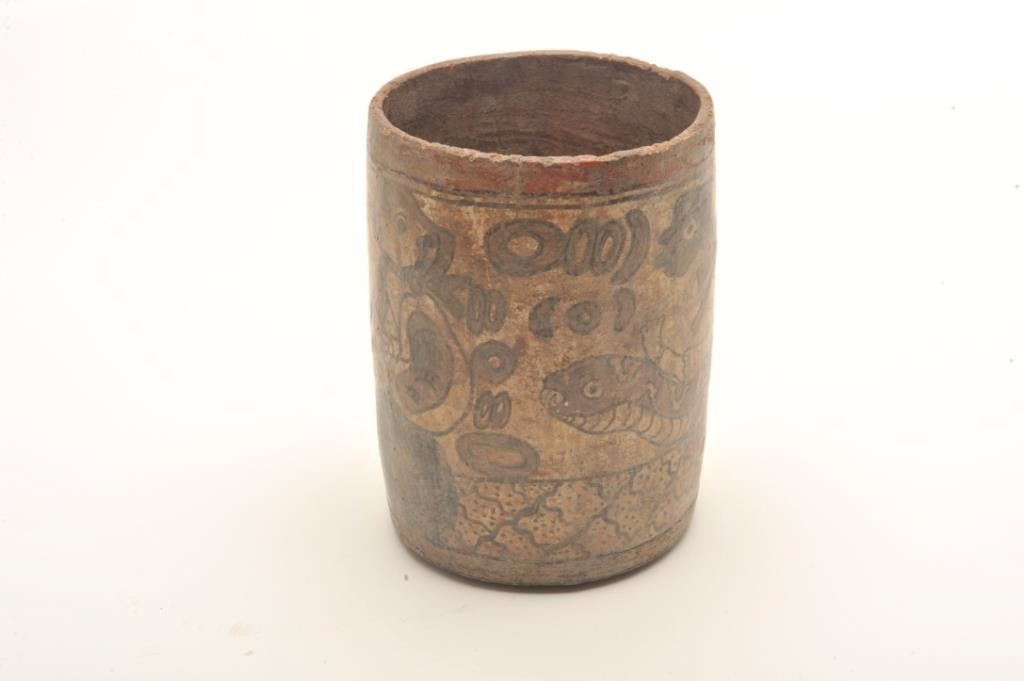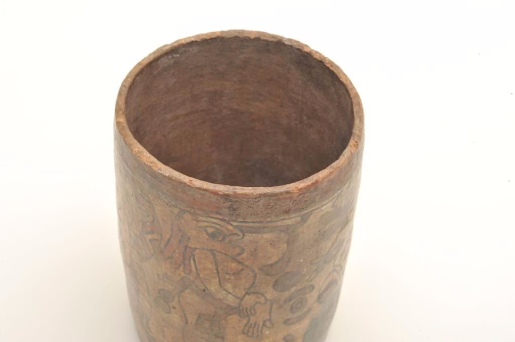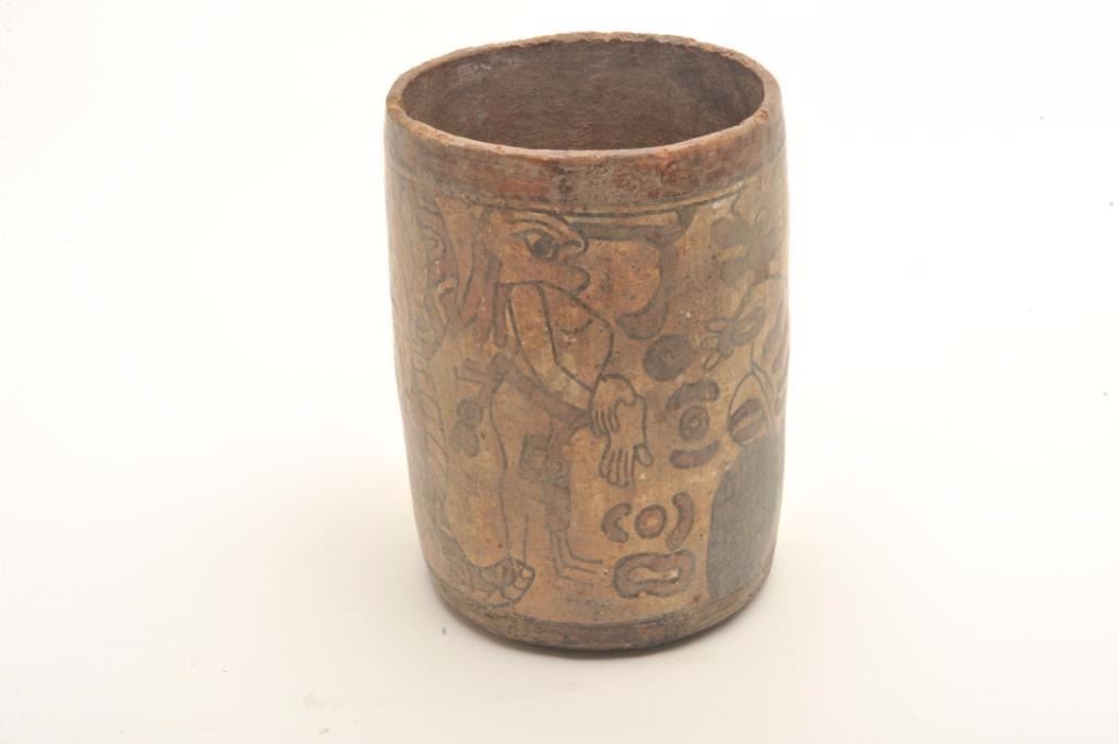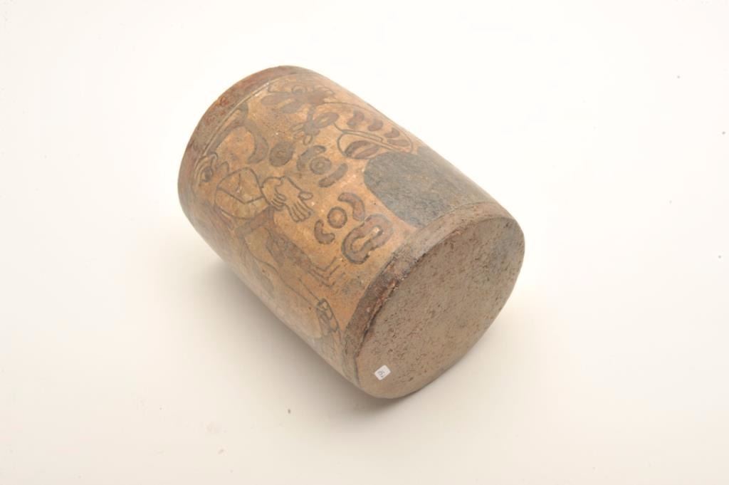 Lot 144 Mayan cylinder polychrome painted and authentic with great scenes. In good condition for its age w