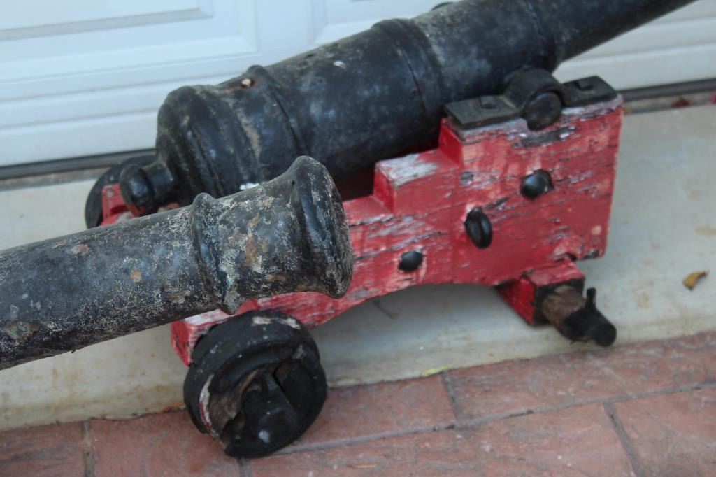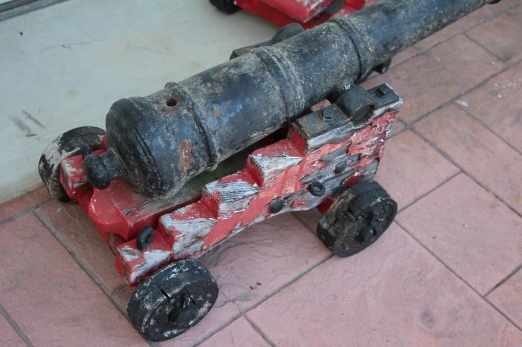 Lot 176a Pair of British Naval guns with 34 ½” iron tubes and 2” bores with black enamel painted finish. Mo
