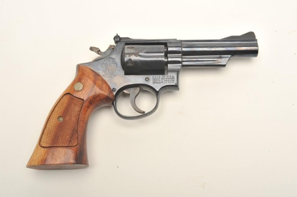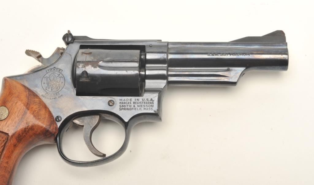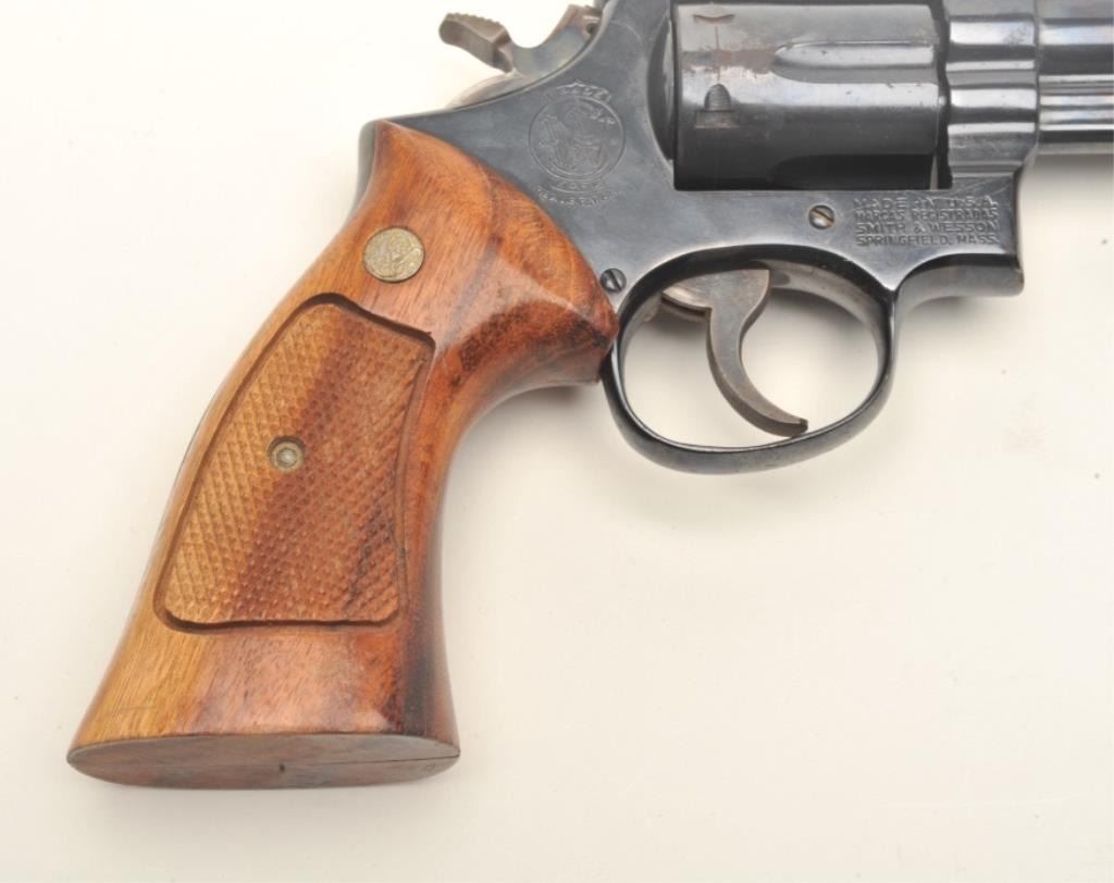 Lot 206 Smith & Wesson Model 19-3 DA revolver, .357 Magnum caliber, 4” barrel, blued finish, checkered woo