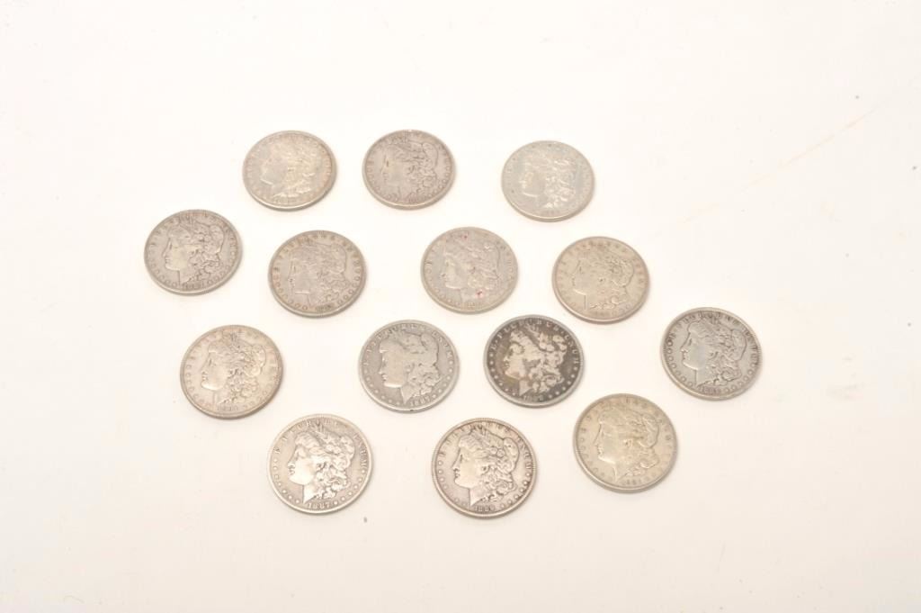 Lot 218 250 Morgan silver dollars in varied conditions and some good dates. Priced at $30-$35 each at show