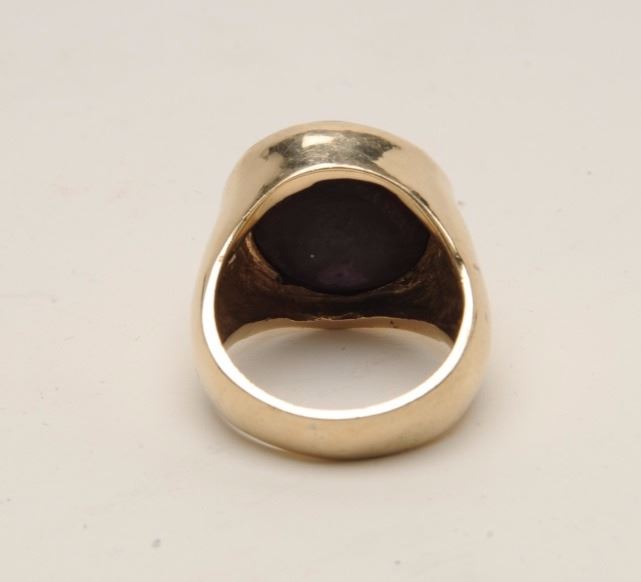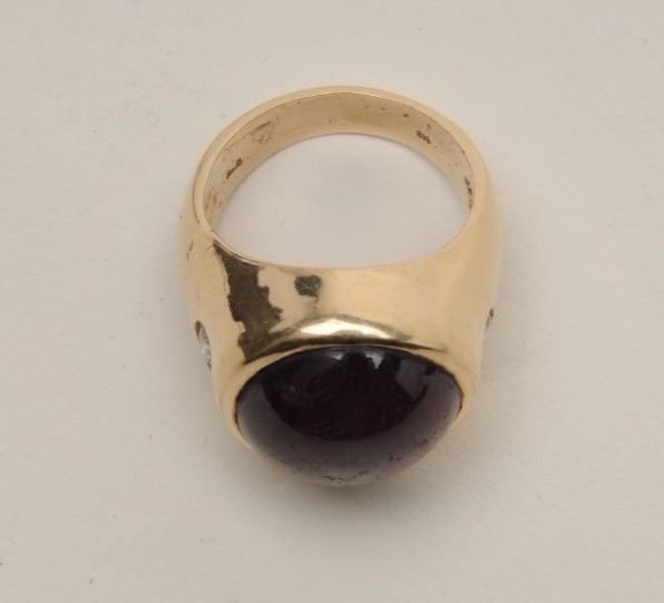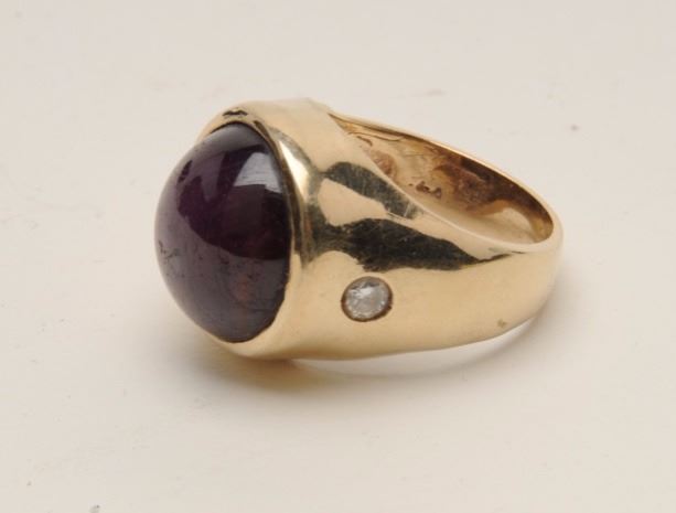 Lot 219 Magnificent approximately 28 CT star ruby on heavy custom 14KT mounting with 2 side diamonds. Appr