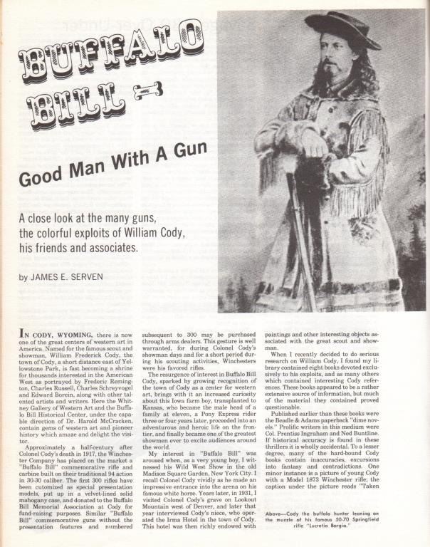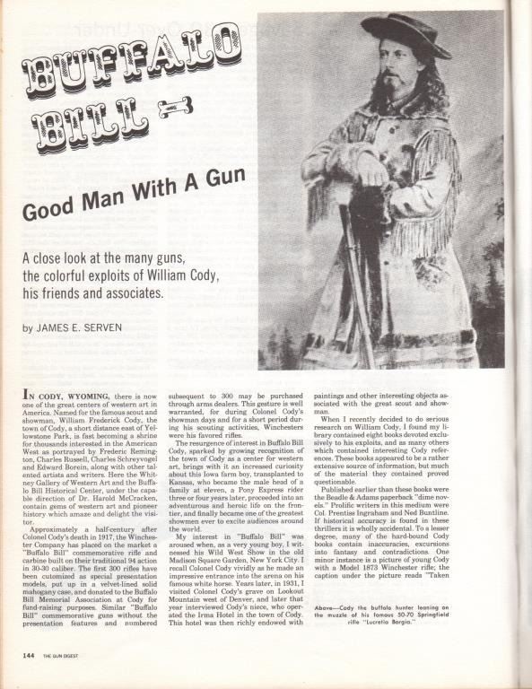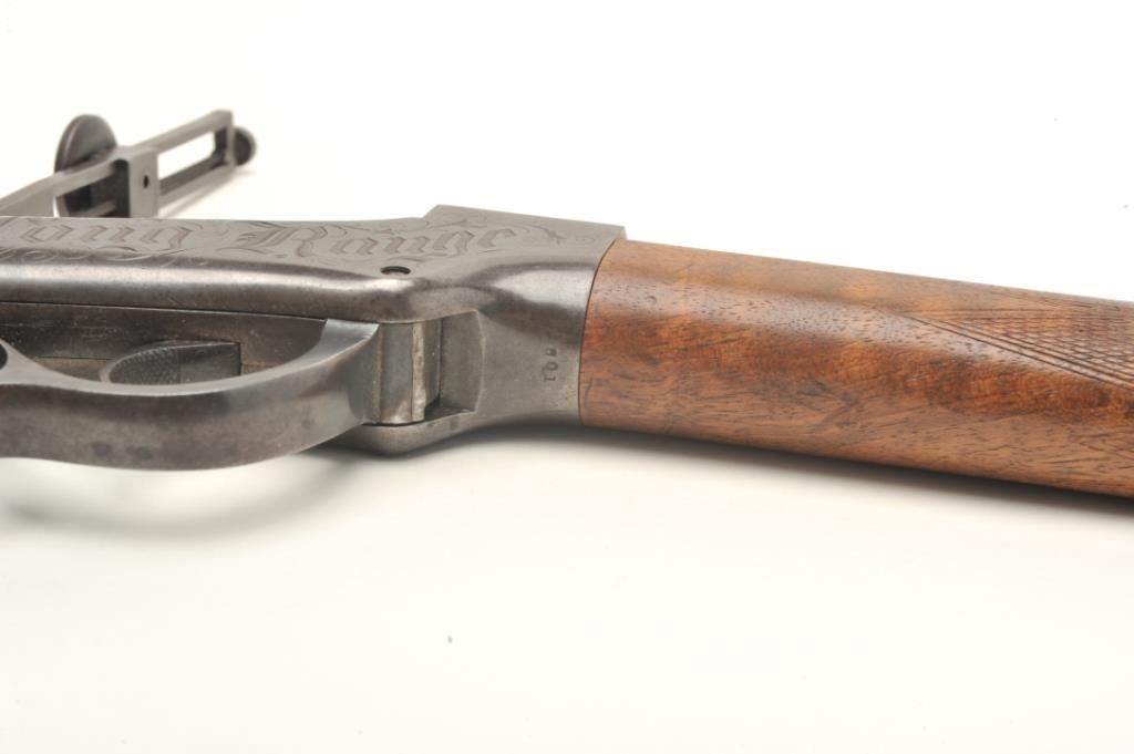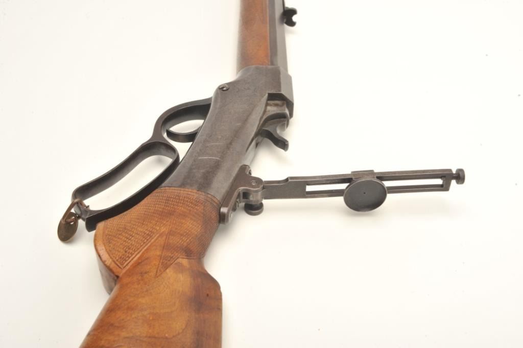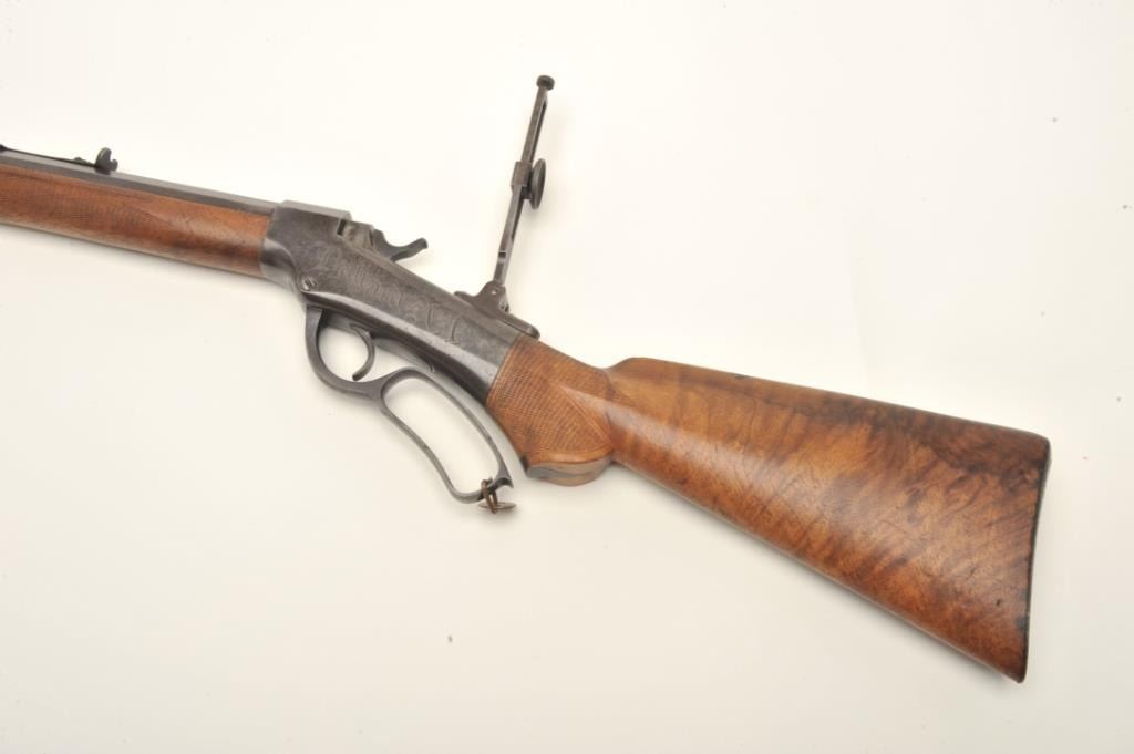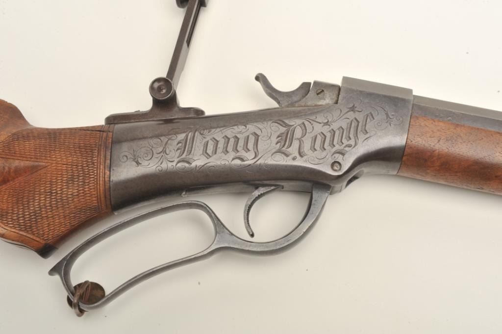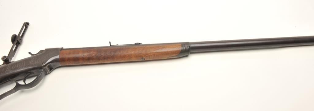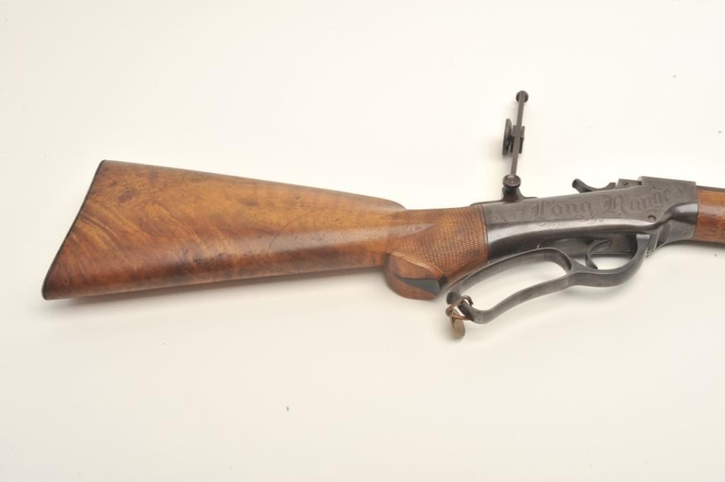 Ballard Model 7-(A-1) long range rifle in .44-100 caliber with a 34” barrel and target sights documented as originally belonging to Buffalo Bill Cody and traded to the “Mormon Avenger” Porter Rockwell, S/N 801. Thedocumentation consists of a notarized affidavit dated 20, August 1938 and signed by Gary Whipple who was an early Salt Lake, Utah pioneer gunsmith. He states he acquired Ballard rifle #801 in 1885 and that it hadbeen brought into the state in 1874 or 75 by Buffalo Bill and Wild Bill Hickock who held an exhibition of long range shooting on the site of the capital while promoting a western tour of their show. After the amazing shootPorter Rockwell traded Cody a span of white horses for this rifle. Whipple states he obtained the rifle in 1885 from Josh Whitman of the Whitman Campbell saloon who obtained the rifle from Horace Rockwell, grandson ofPorter Rockwell. The rifle was sold to Stan Jorgeson of Provo, UT by Whipple in 1938 with this document. James Serven obtained the rifle from Jorgeson and sold it to Harold’s Club for their collection in Reno, Nevada.