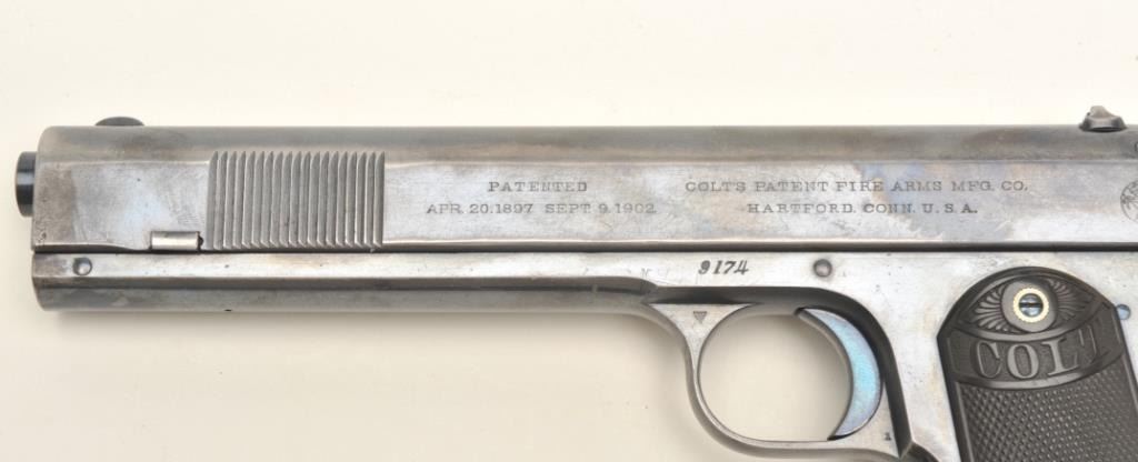 Lot 285 Colt Model 1902 Sporting semi-automatic pistol (ca. 1906), .38 Rimless Smokeless caliber, 6” barre