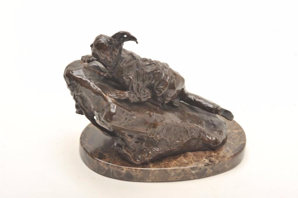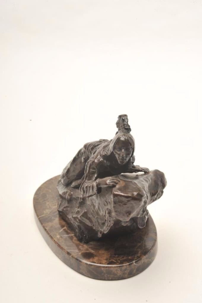 Lot 301 Modern Casting after C. Kauba of Indian on Rock, 7 1/2" ht including base. Last 20 years. Est:$200