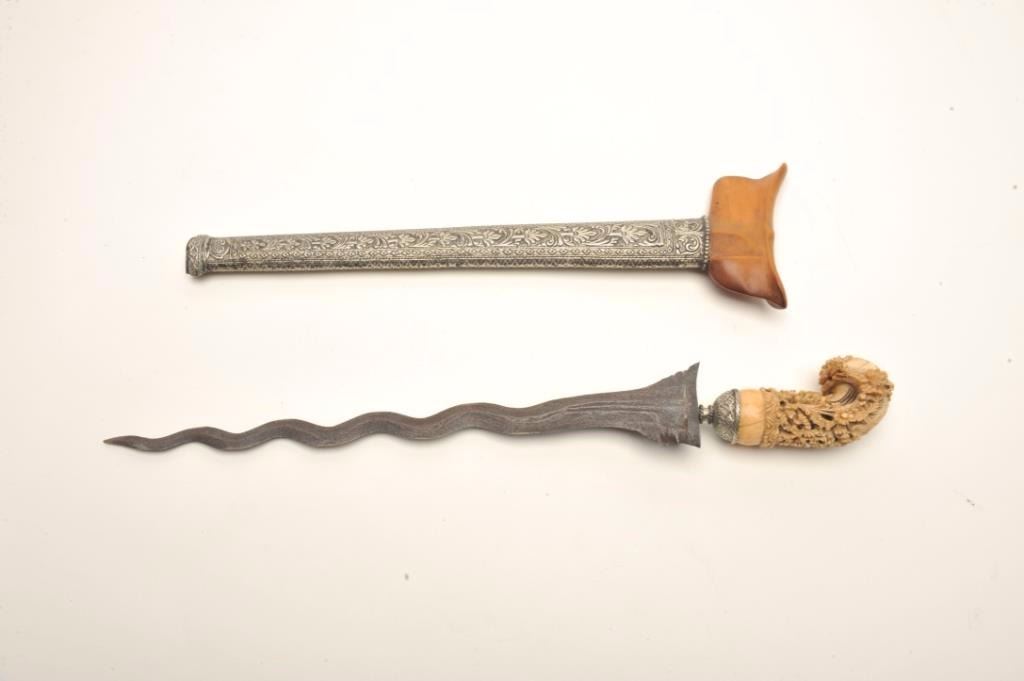 Lot 327 Malaysian kris circa late 18th to early 19th century of chieftain’s quality with ornately carved g