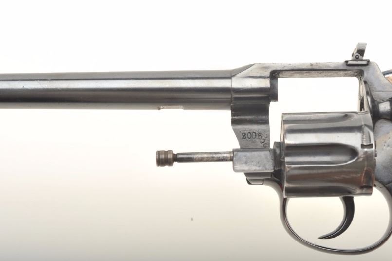 Lot 336 Colt Police Positive in .22L.R. customized with a 9” barrel and folding rifle type rear sight with