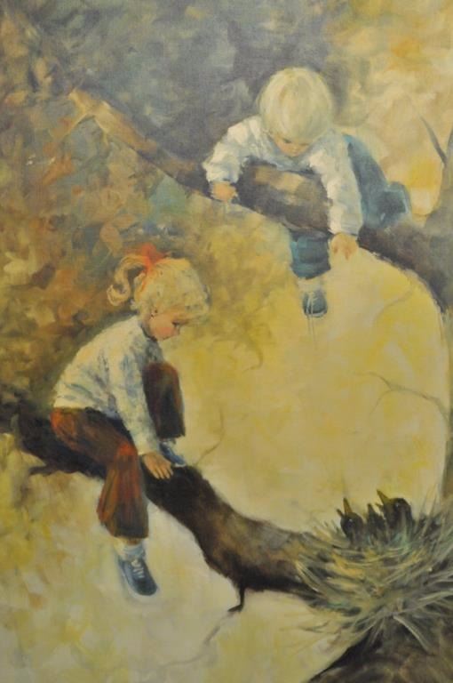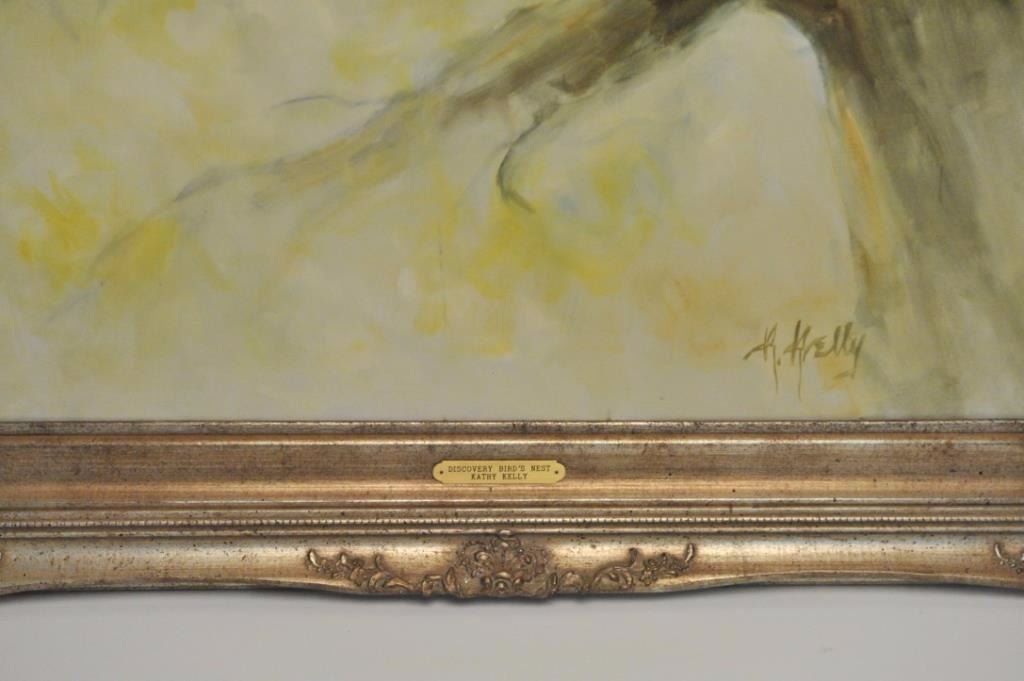 Lot 377 Original oil on canvas signed lower right “K. (Kathy) Kelly”. Entitled “Discovery, Bird’s Nest”. M