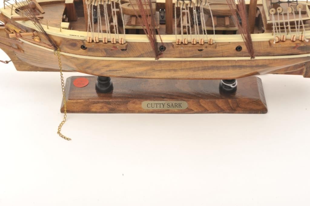 Lot 389 Lot of 3 beautiful sailing ship models on wood stands including the Cutty Sark, the HMS Victory an