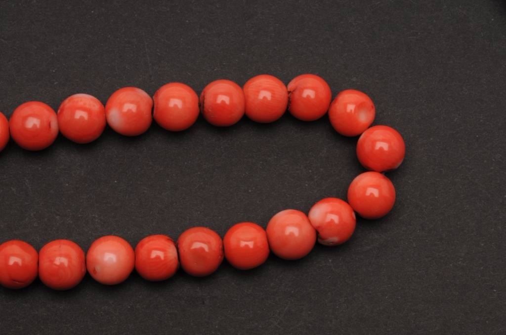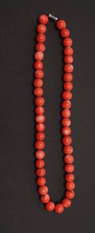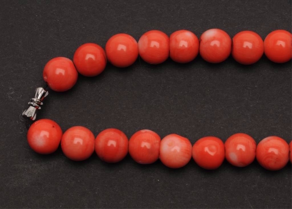 Lot 507 One rare strand of salmon color coral beads dia 11.5mm and 28inches long. Est. $550 -$1100.