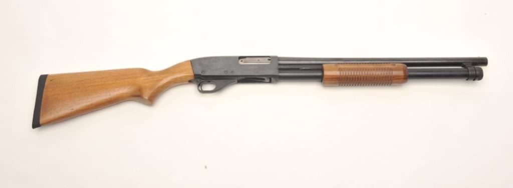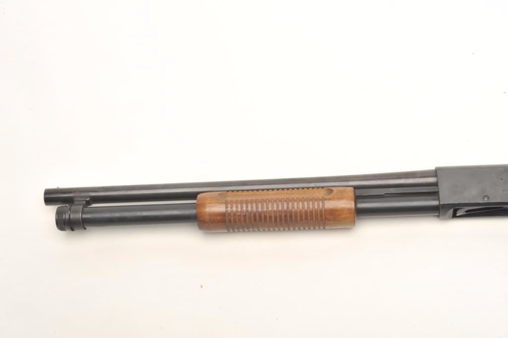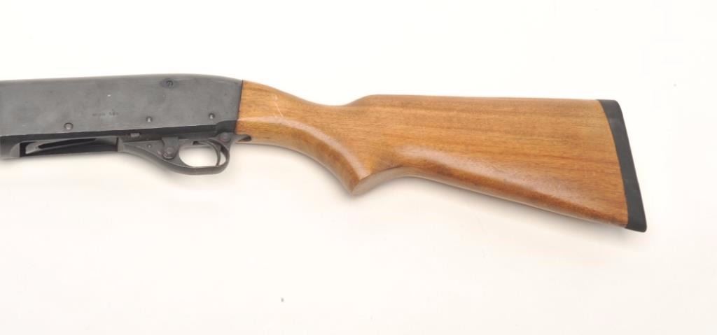Magtech Model 586 pump action shotgun, 12 gauge, 19” barrel, blued finish, wood stocks, S/N 69048, in overall good to very good condition with majority of original blue on metal surfaces, very good to fine bore, crisp action, sharp markings and very good wood. (Modern). Est.: $150-$300.