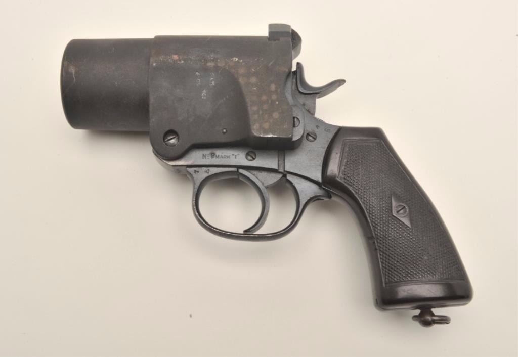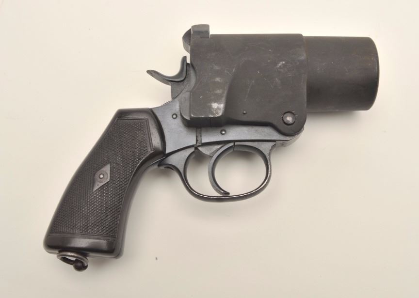 Lot 625 British No. 2 MK I flare pistol, 37mm caliber, approximately 8” overall, blued and mat black finis