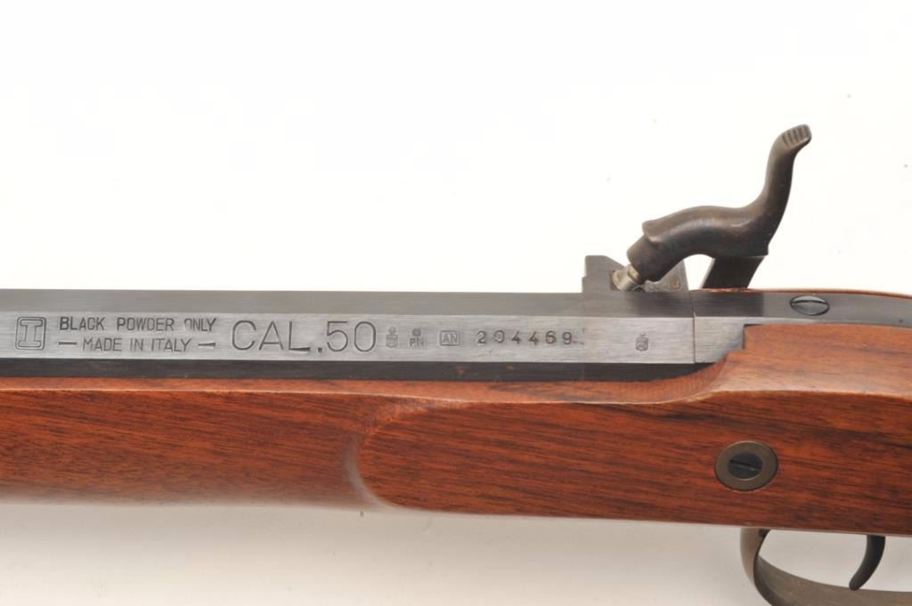 Lot 664 Italian made black powder percussion single shot rifle, .50 caliber, serial #204469. The rifle is