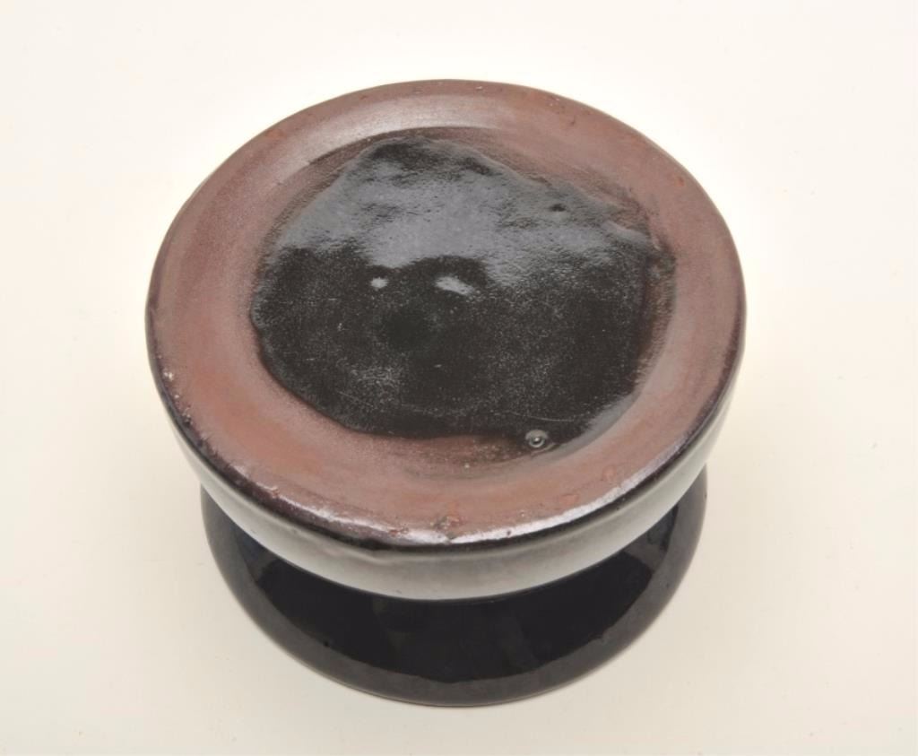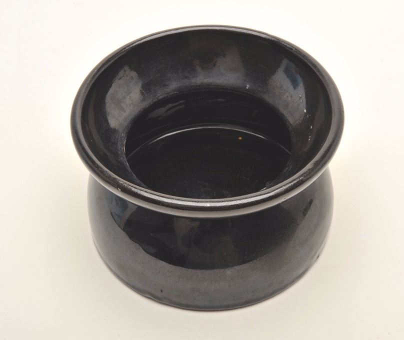 Lot 688 Old black glazed spittoon, approximately 4” in height and 7” in diameter; good condition. Est