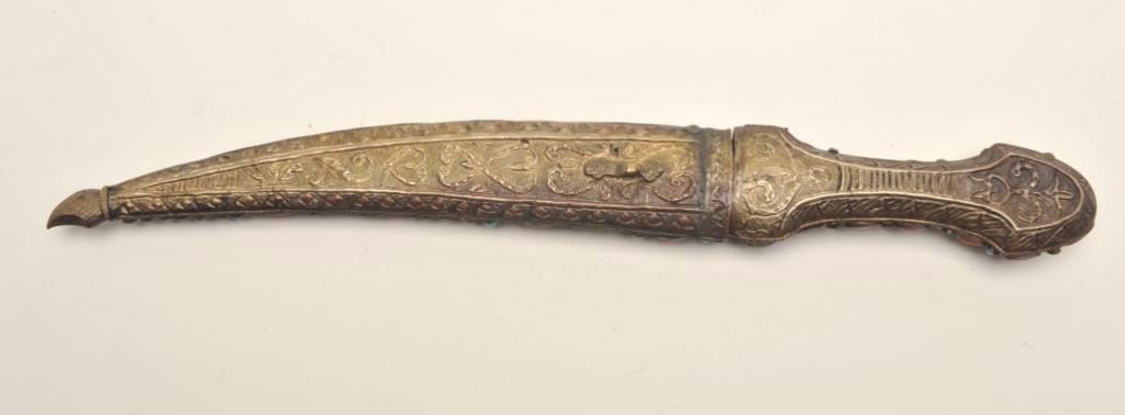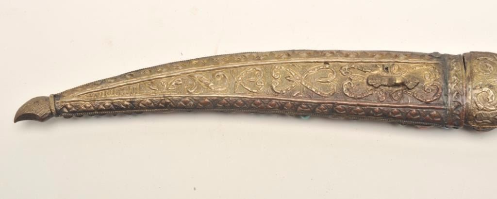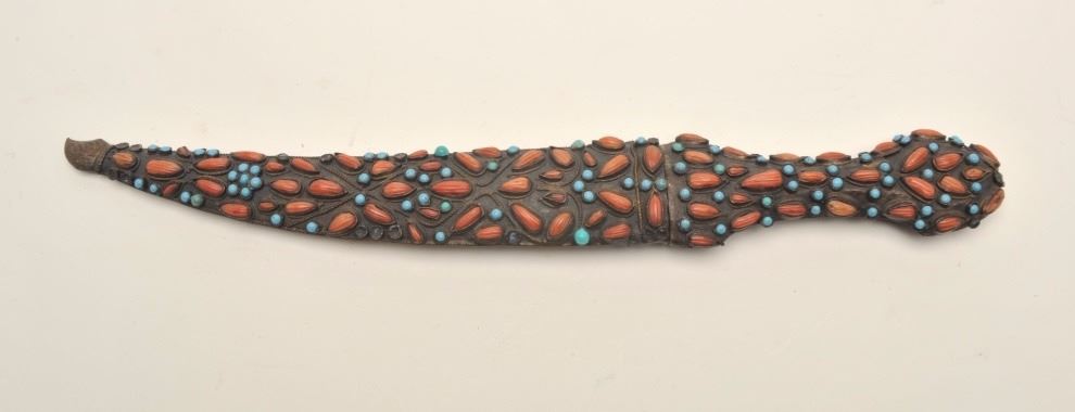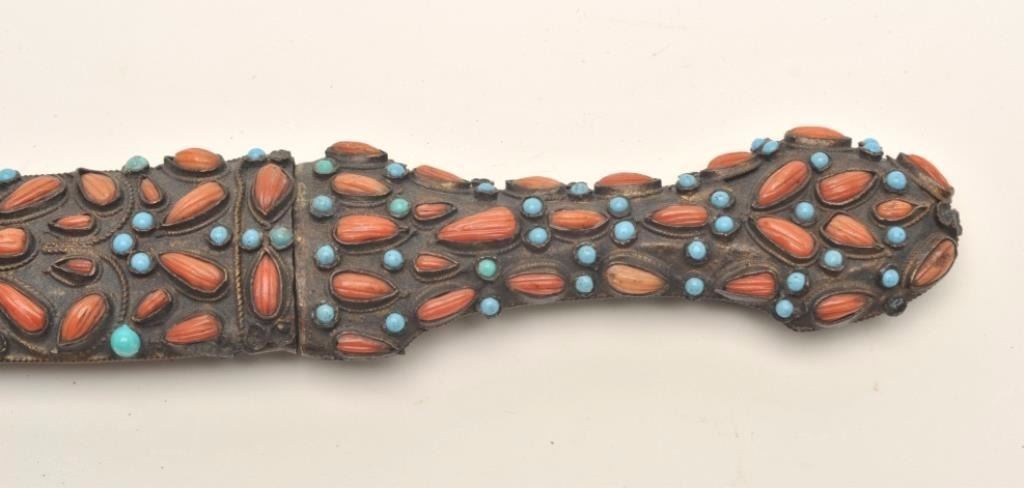 Lot 776 Ornately inlayed Jambiya dagger with coral and turquoise. The dagger is in very good overall cond