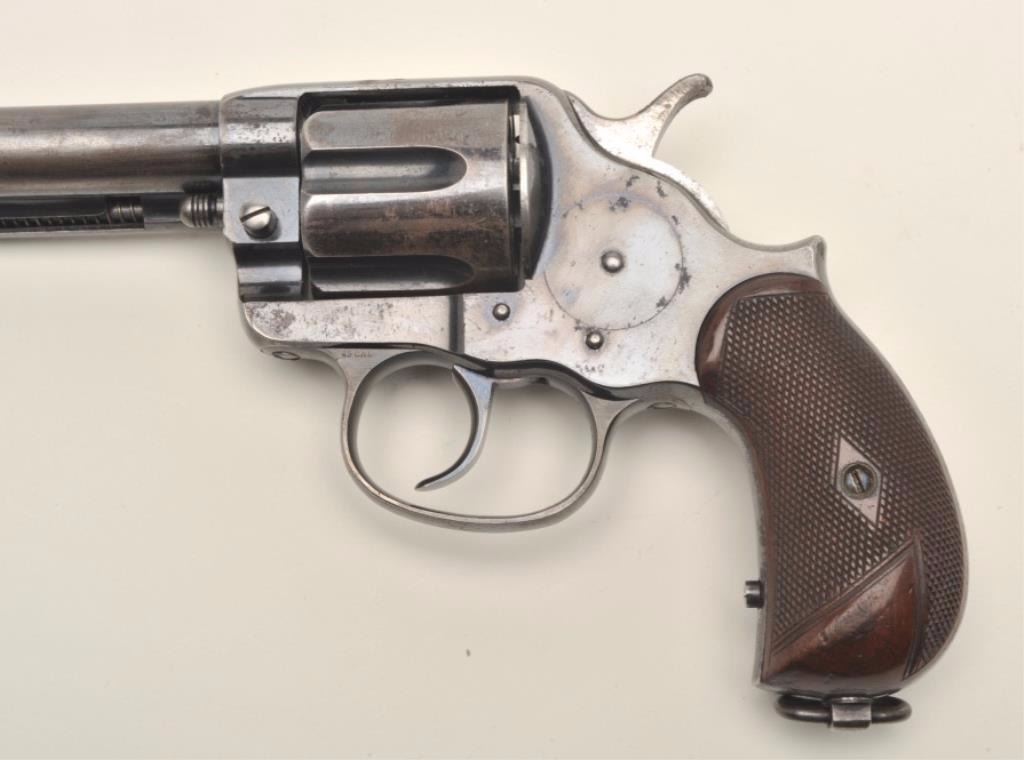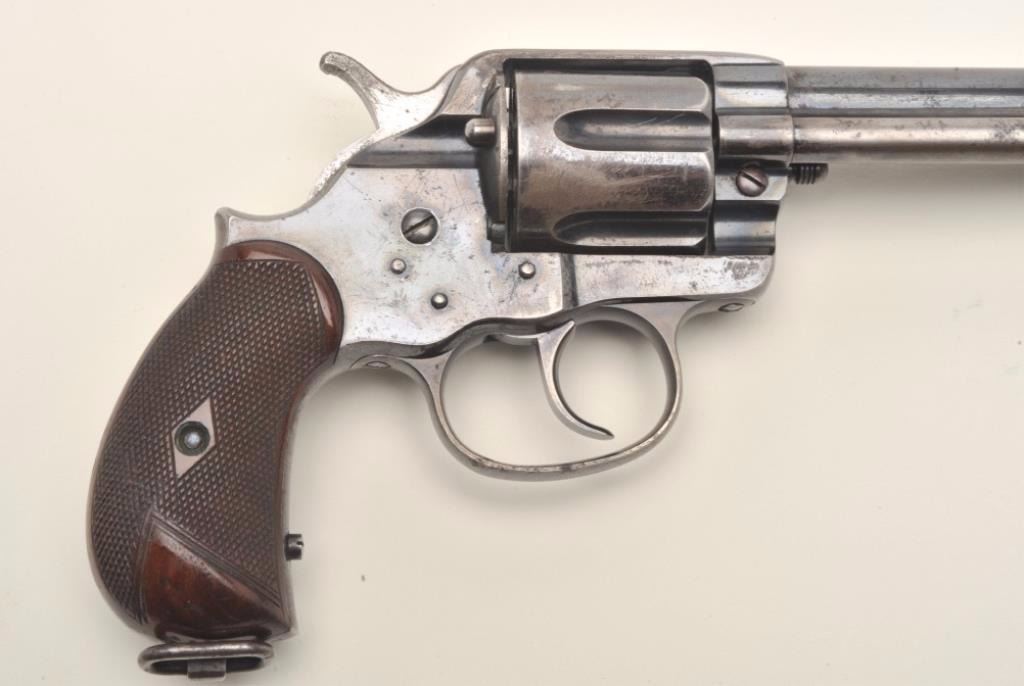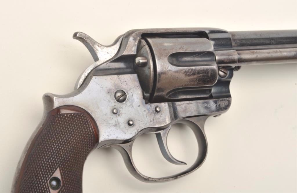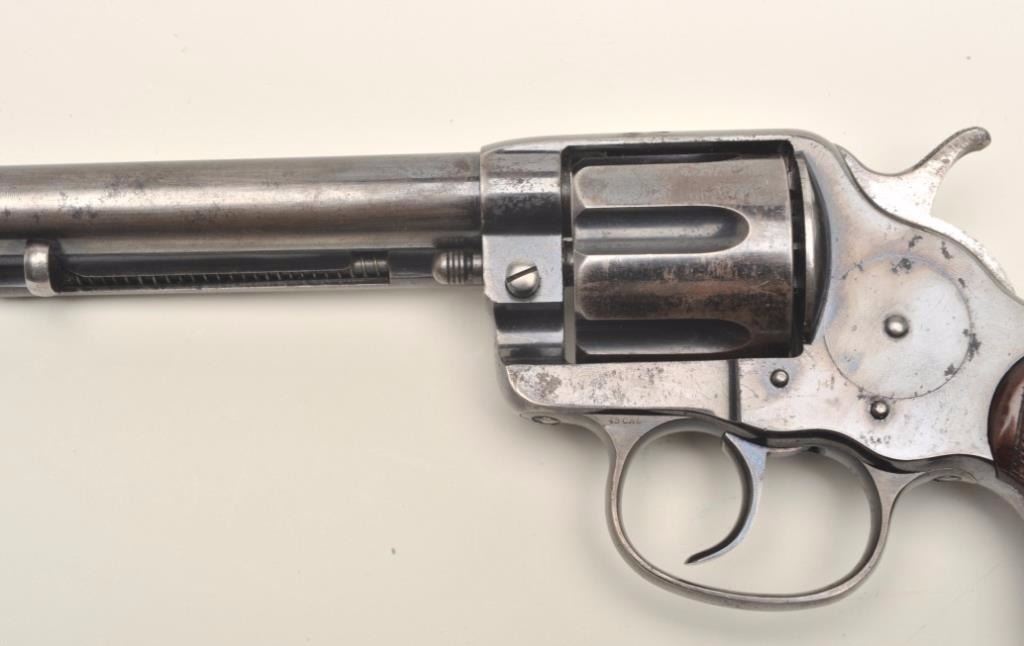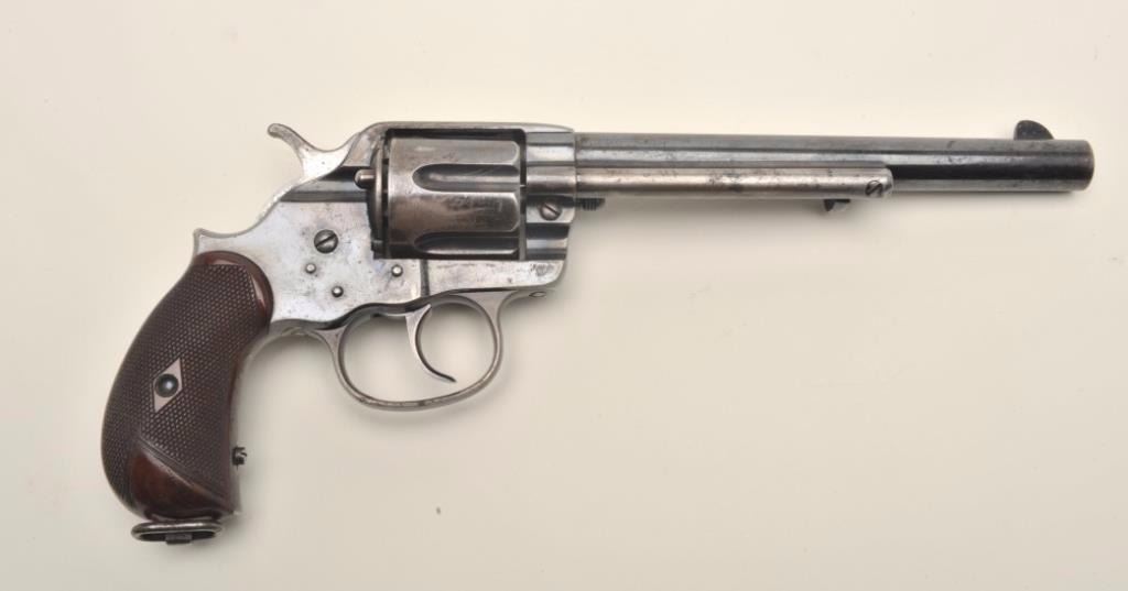 Lot 819 Colt Model 1878 DA revolver, .45 Colt caliber, 7.5” barrel, blued finish, early fat checkered wood