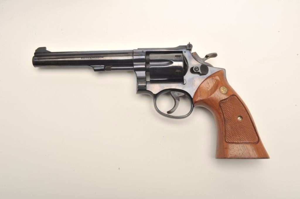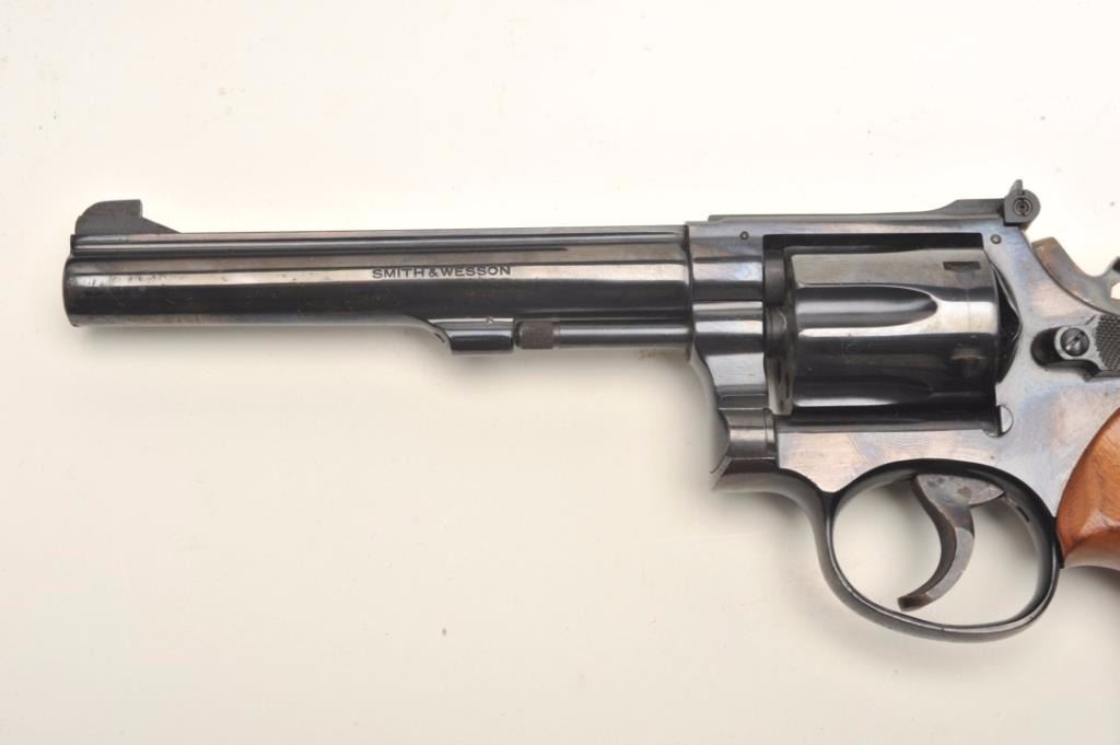 Lot 821 Smith & Wesson Model 17-3 DA revolver, .22LR caliber, 6” barrel, blued finish, target hammer and t