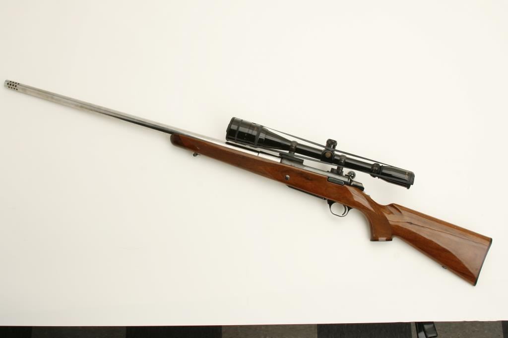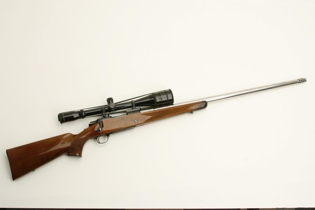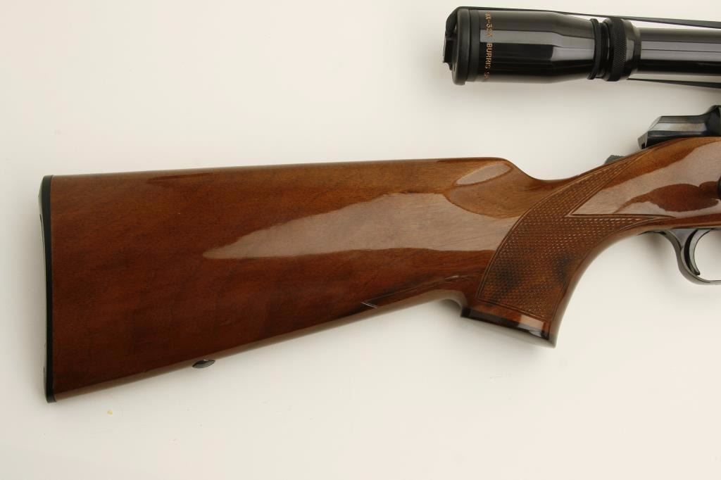 Browning BBR bolt action custom rifle in 6mm 284 with Douglas Premier 30.5” ported barrel, checkered wood stock, S/N 22443PX117, in overall fine condition and mounted with a Burris 8X-32X Signature Series scope withfine optics (20 years ago the scope cost approximately $800 and the rifle, approximately $2,000); per consignor, less than 50 rounds fired; a real tack driver! (Modern). Est.: $900-$1,800.
