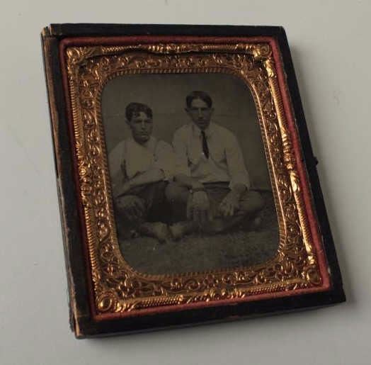 Lot 846 Collectors hoard of baseball-related items including: 1. A very early photo of 2 men with gloves