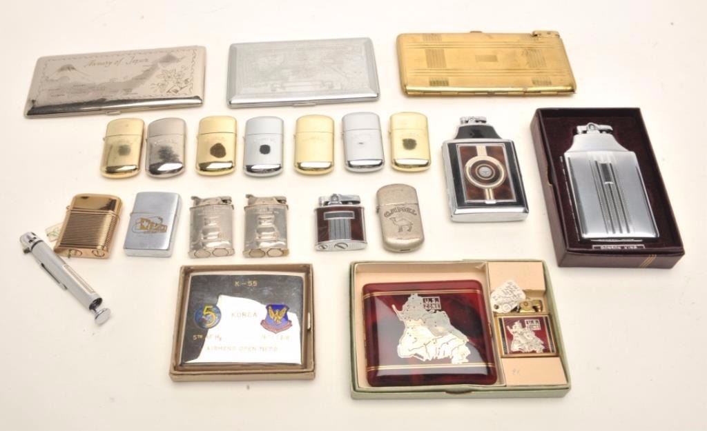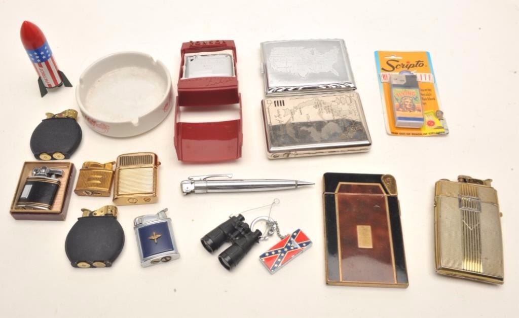 Lot 852 Misc. lot of vintage and collectible lighters and combination lighters/cigarette cases including a