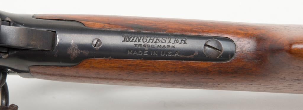 Winchester Model 92 lever action SRC, .25-20 W.C.F. cal., 20” barrel, blue finish, wood stocks, #990948 in minty condition showing the majority of its original finish, minty bore, crisp action, sharp markings and finestocks. From the estate of Joe Kiser. (C&R). Est.: $2,500-$5,000.