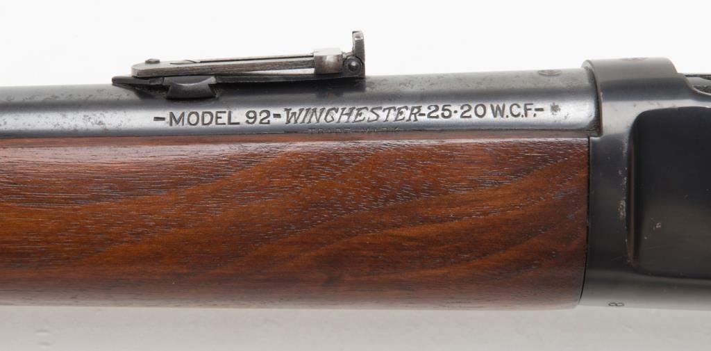 Lot 861 Winchester Model 92 lever action SRC, .25-20 W.C.F. cal., 20” barrel, blue finish, wood stocks, #9