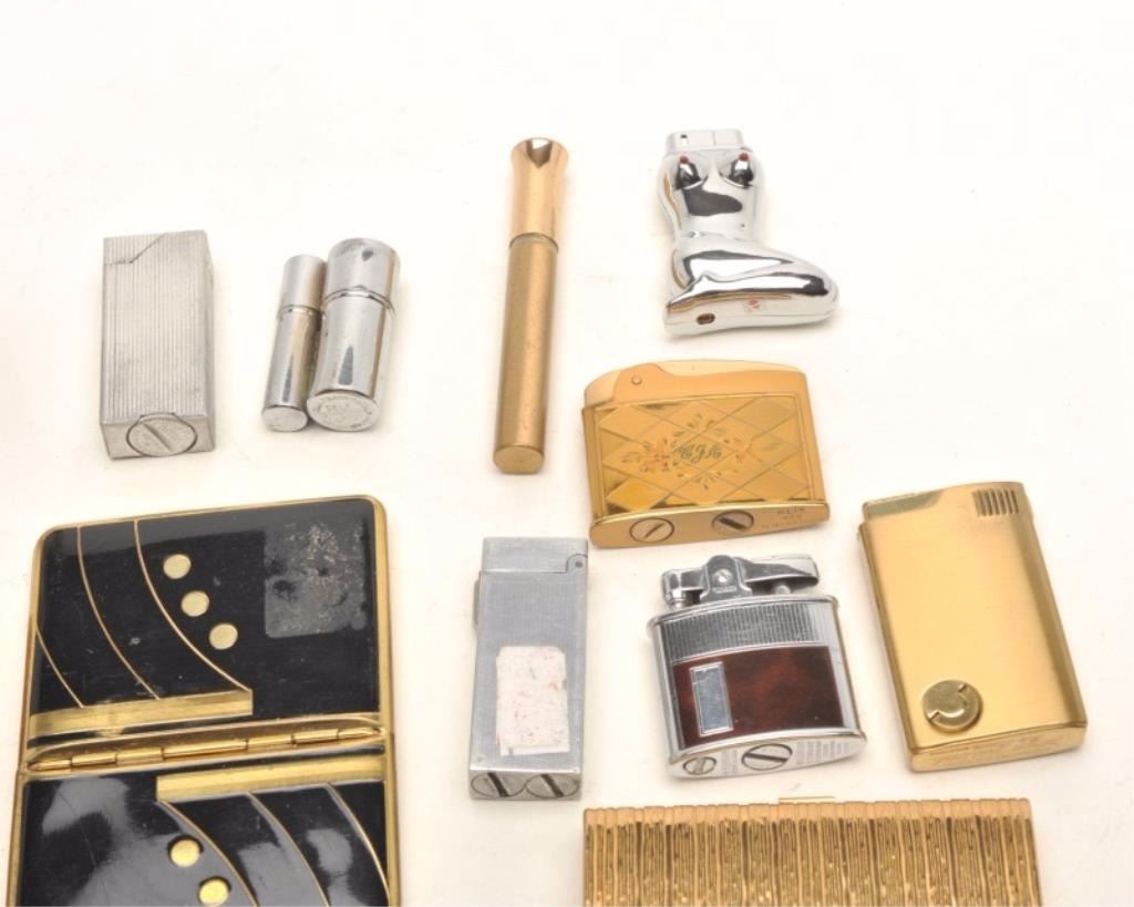 Lot 868 Misc. lot of vintage and collectible cigarette cases and lighters including a clutch purse by Evan