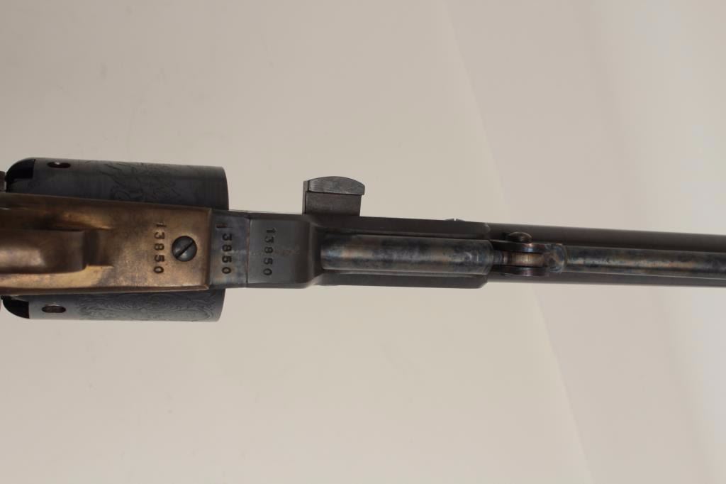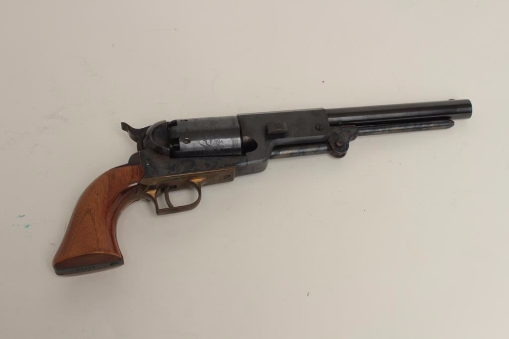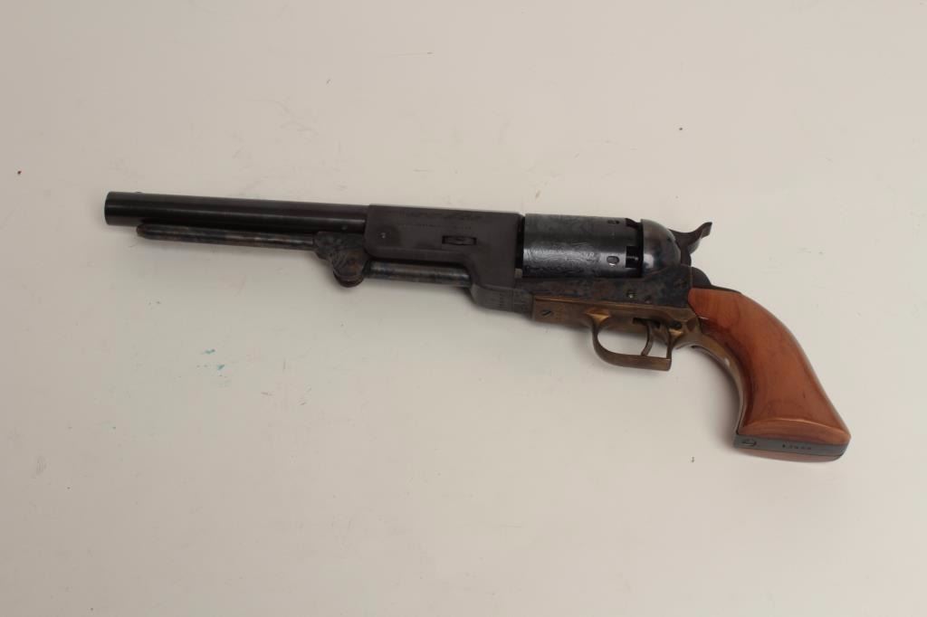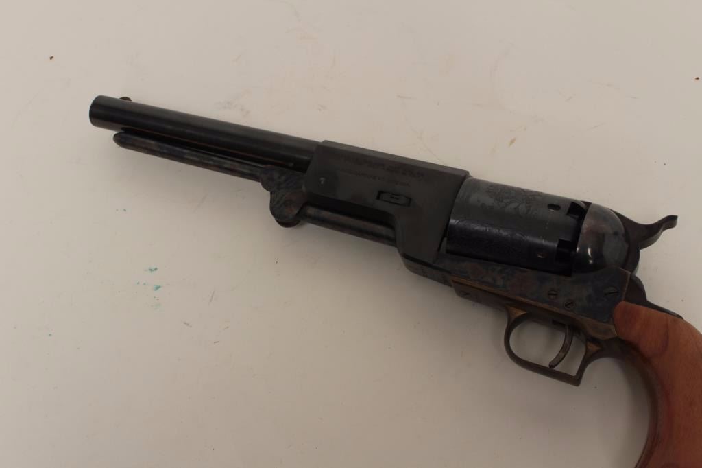 Italian reproduction of a Colt Walker percussion revolver, .44 caliber, 9” barrel, blued and case hardened finish, wood grips, S/N 13850, in overall fine condition. (Percussion). Est.: $400-$800.