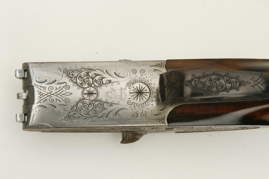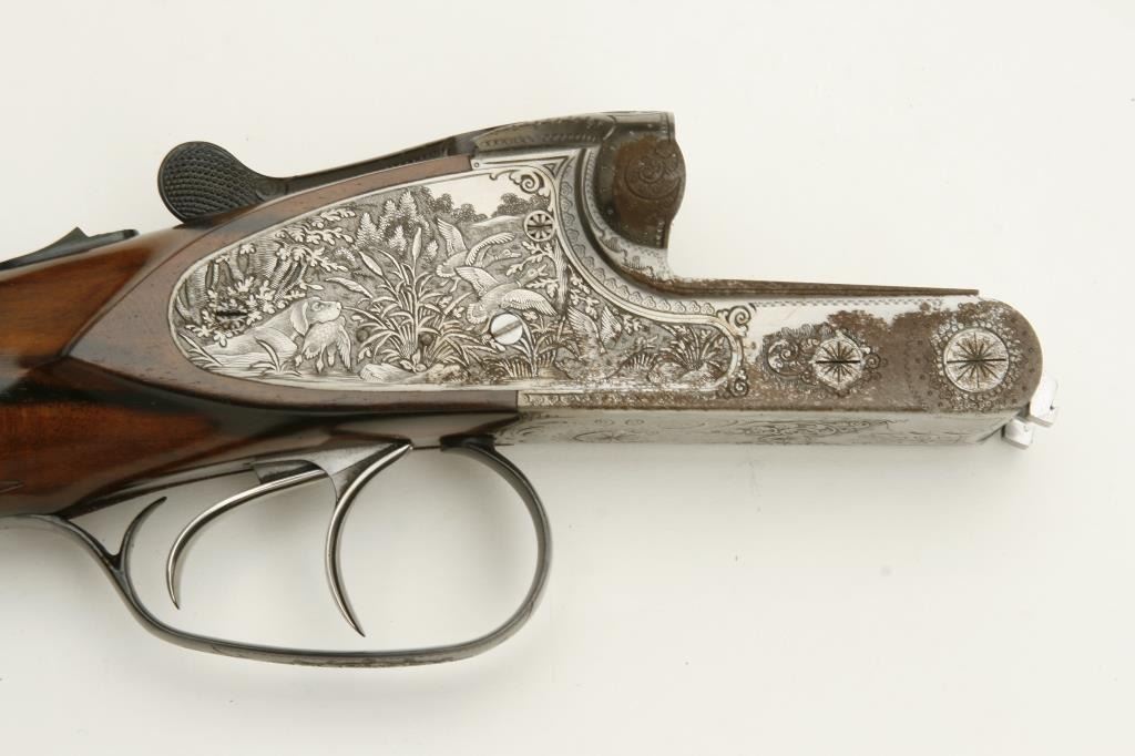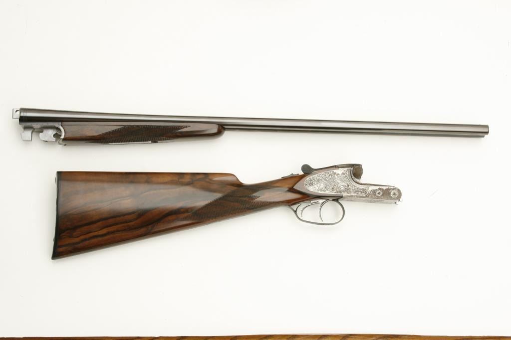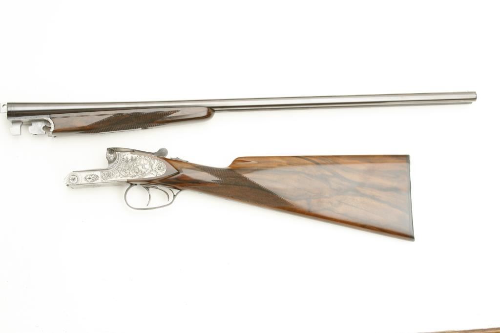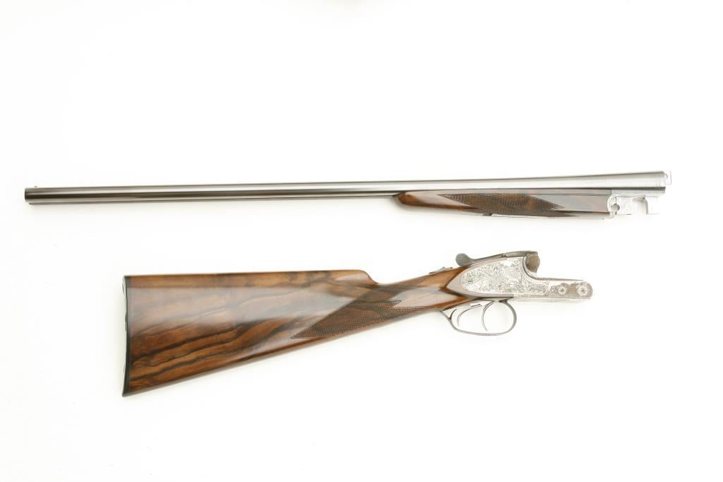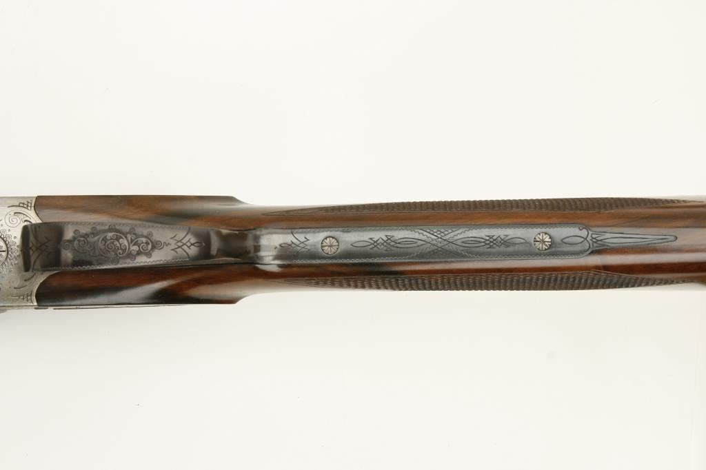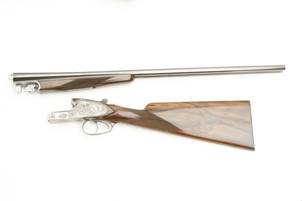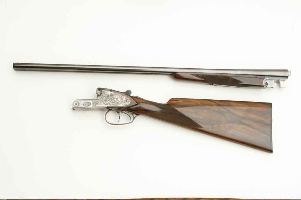 Lot 886 Merkel High Grade SxS shotgun, 28 gauge, 26.75” barrels, blued finish to barrels, finely engraved