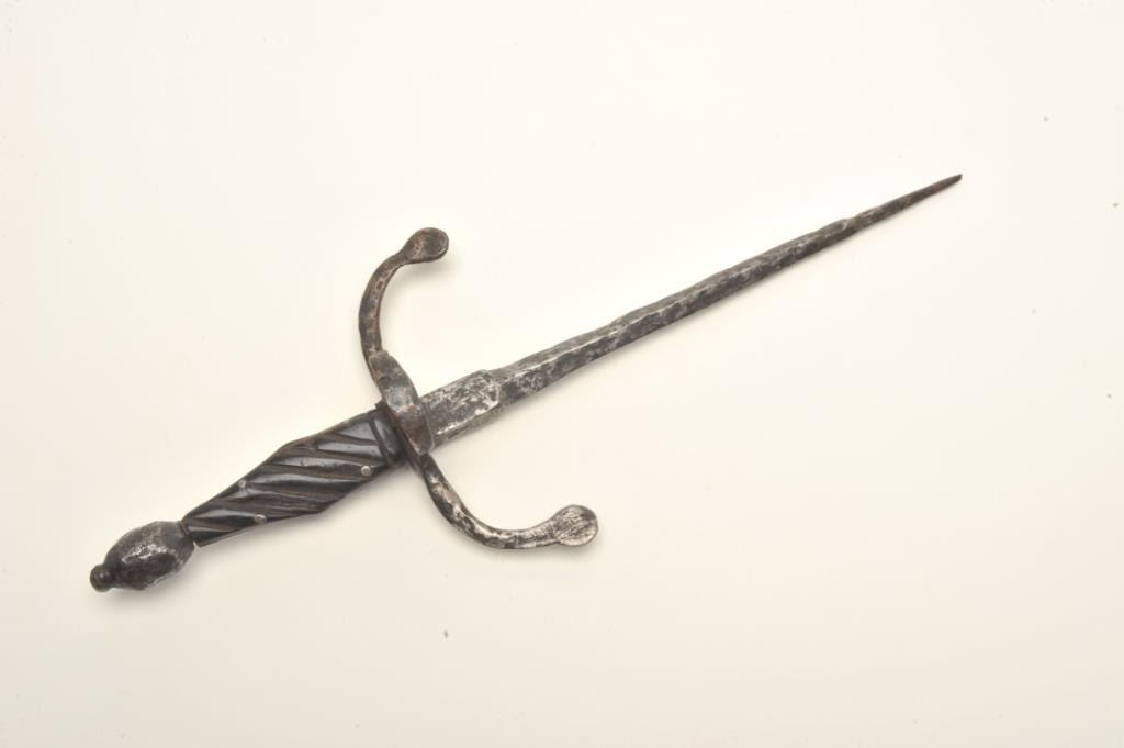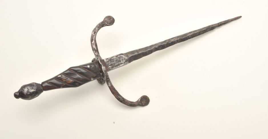 Lot 889 17th century left-handed dagger, probably Italian, four-sided stiletto type blade measuring 14” ov