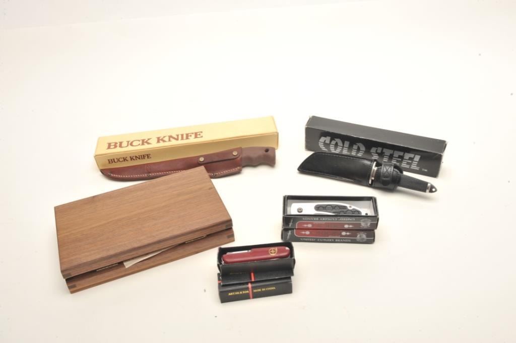modern knives. Bucks and others. 8 pieces total. Est.: $100-$200