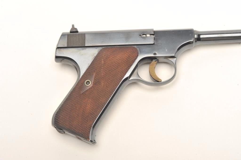 Lot 903 Colt Pre-Woodsman semi-auto pistol, .22 Long Rifle caliber, serial #7989. The pistol is in very g