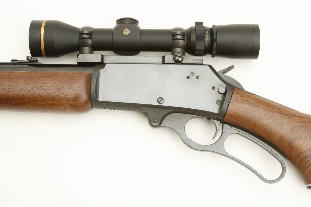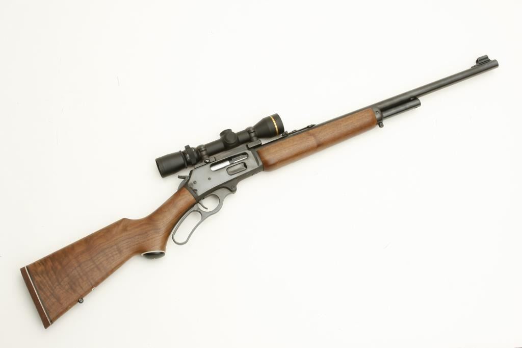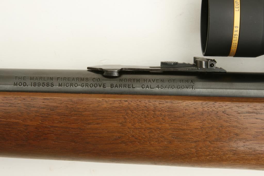 Marlin Model 1895SS lever action rifle, .45-70 Gov’t caliber, 22” round barrel, ¾ magazine, blued finish, wood stocks, S/N 08036527, in overall excellent condition with a crisp action and markings, fine bore,excellent wood and mounted with a Leupold Vari-X III 1.75 x 6 scope with fine optics. (Modern). Est.: $400-$800.