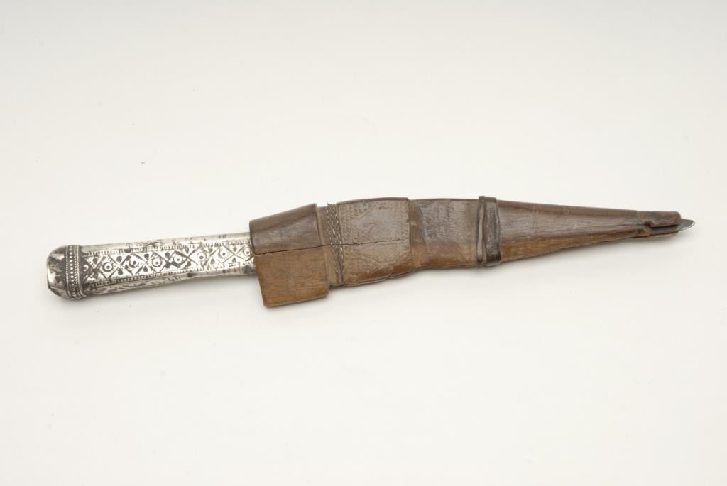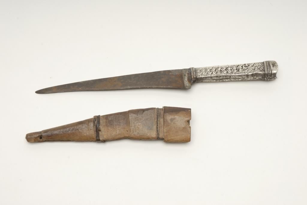 Lot 953 Silver handled dagger from North Africa with leather over wood scabbard. 19th to early 20th centur